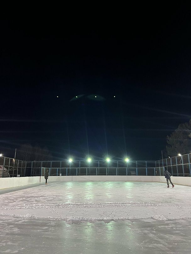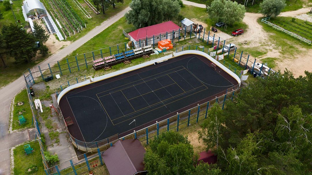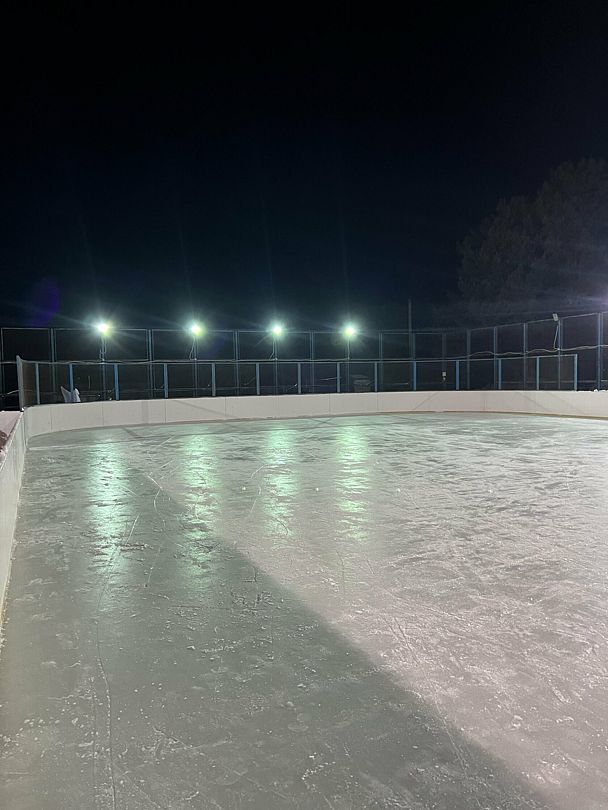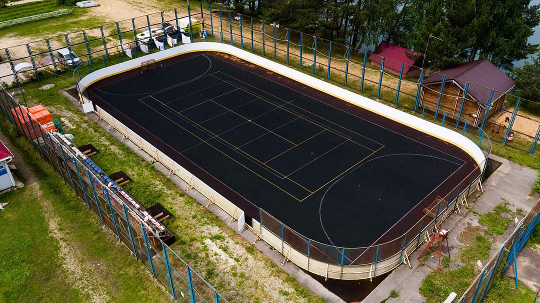 С наступлением зимы теннисный корт превращается в ледяное царство, приглашая любителей зимних видов спорта скользить по гладкому льду и наслаждаться зимними забавами в окружении живописной природы.