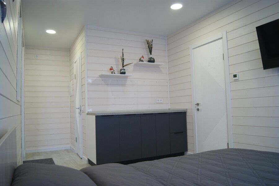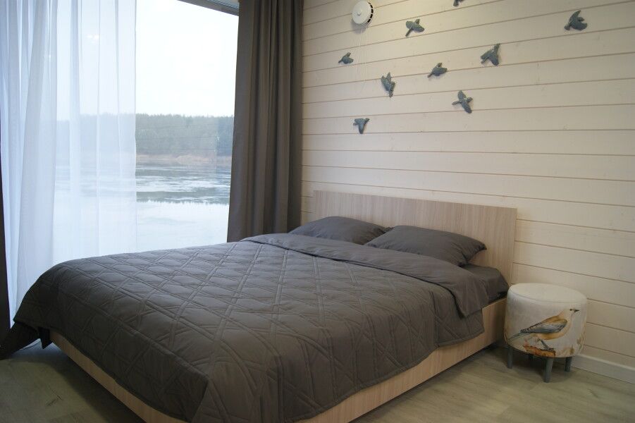 Четырехместный номер в одноэтажном доме «ЭКО-отеле» с выходом к водоему. Собственная терраса с лаунж зоной. Около дома есть мангальная зона. Площадь номера 60 кв.м. Потрясающий вид из окон!