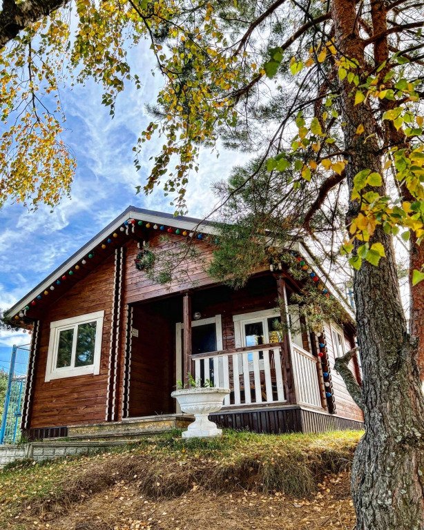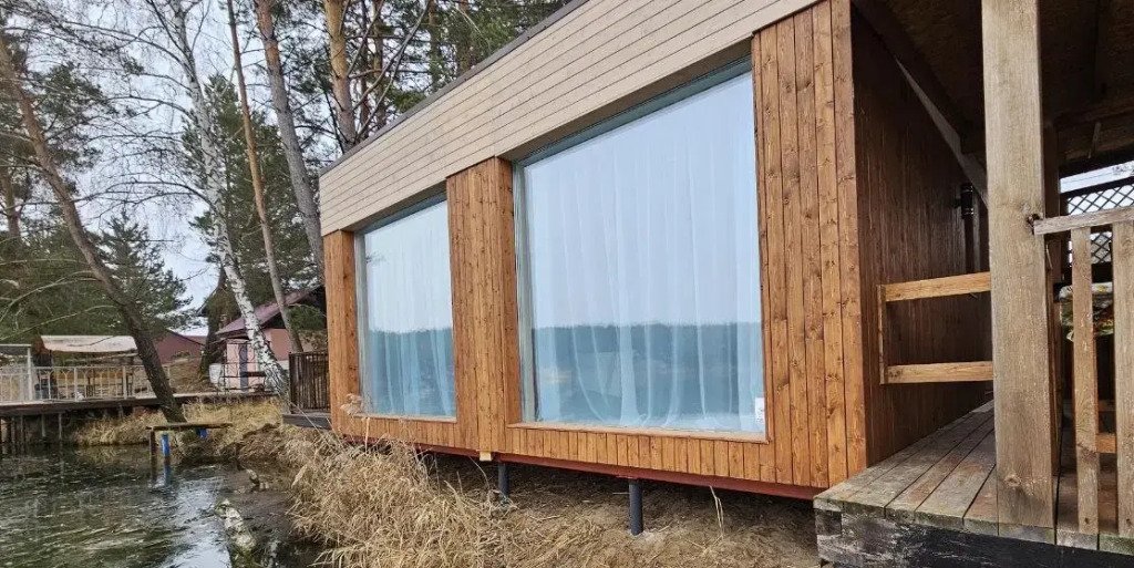 Двухэтажный дом с выходом к водоему. Собственная терраса с лаунж зоной. У дома есть свой чан «Сибирский Бриллиант», находится непосредственно на террасе. Около дома есть мангальная зона. Площадь дома 120 м². Потрясающий вид из окон!