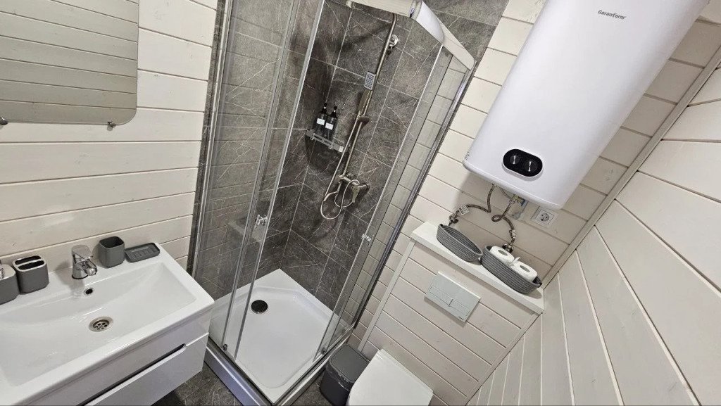 - Ванная комната: душевая кабина, туалет, фен, утюг, гладильная доска;