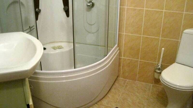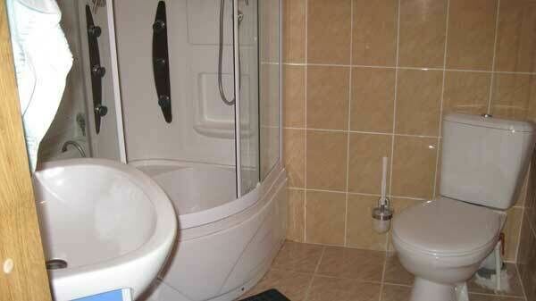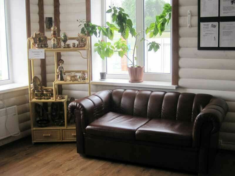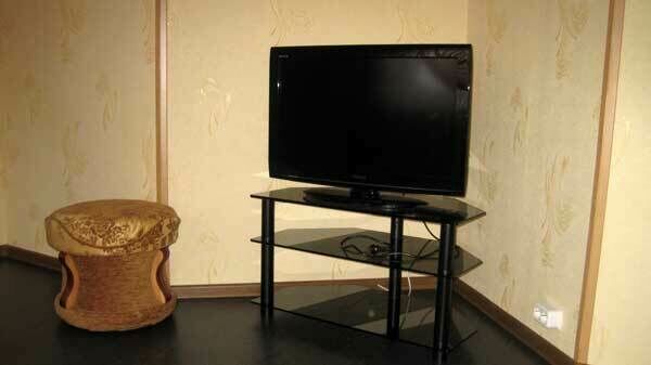 Небольшая уютная комната с раскладным диваном. Телевизор, холодильник. В каждом из номеров есть чайный сервиз и электрочайник.