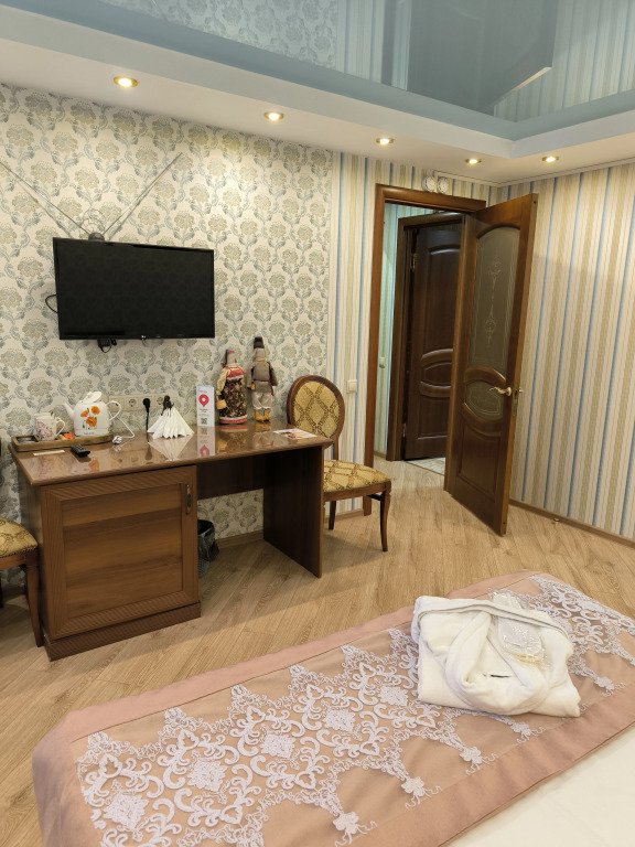 Чтобы вы могли отдохнуть после долгого дня, в номере есть телевизор и халат. Перечисленные услуги есть не во всех номерах.