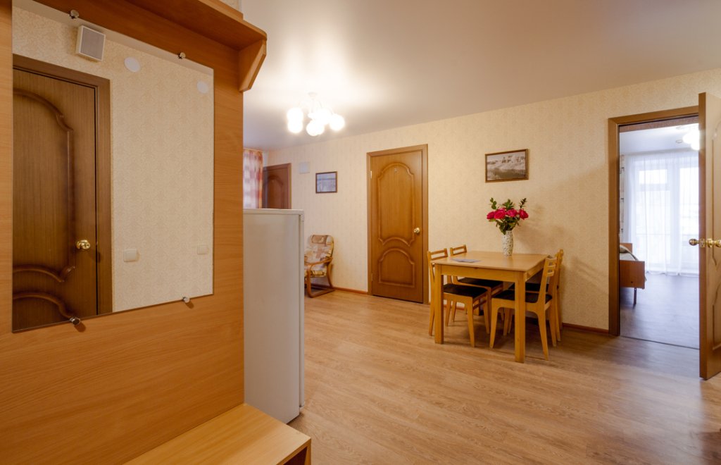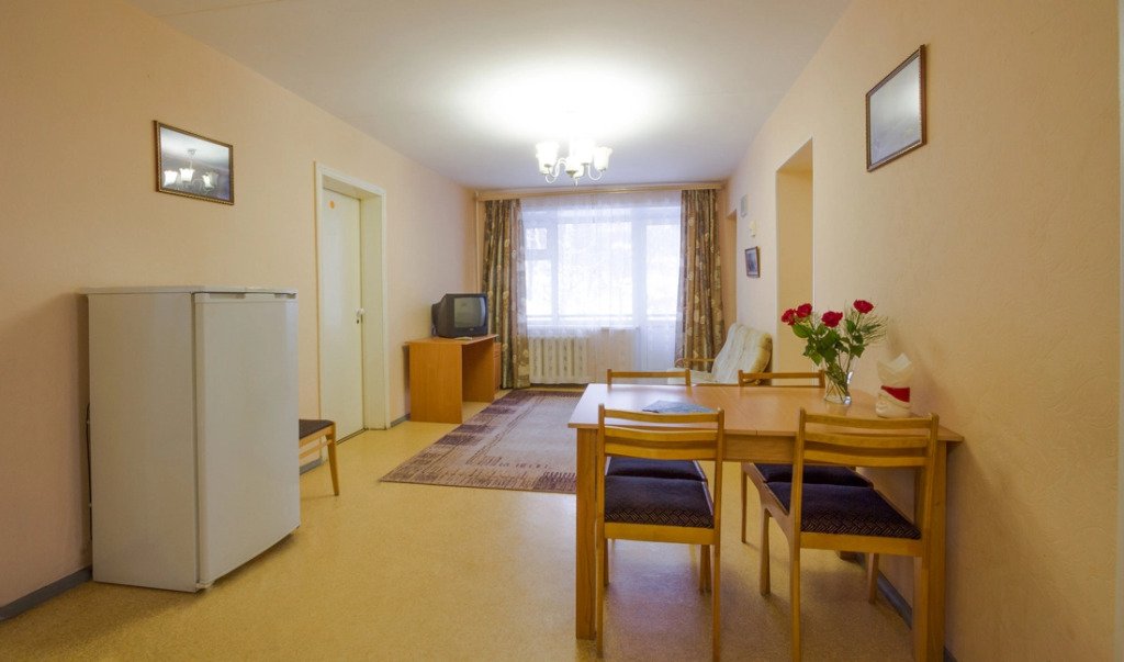 Комфорт номер в секции — 4 номера, 3 общих санузла, общие кухонная и обеденная зоны.