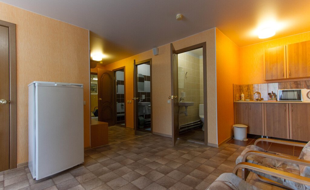 Эконом номер в секции — 4 номера, 1 общий санузел, общие кухонная и обеденная зоны.