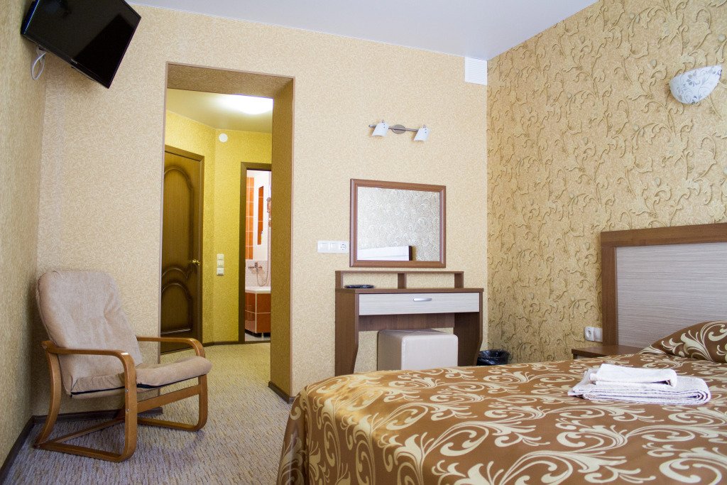 В отеле 57 номеров двух категорий. Стандарт, Премиум и Люкс с индивидуальным размещением — это отдельные номера с удобствами. Эконом и Комфорт с секционным размещением.