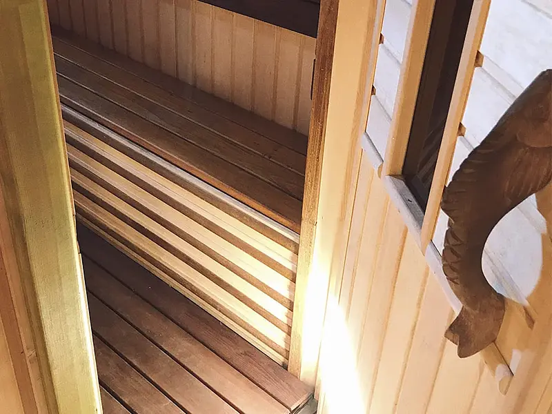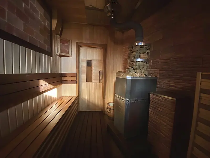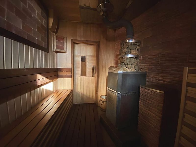 Баня доступна только гостям коттеджа, так как находится непосредственно в нем.