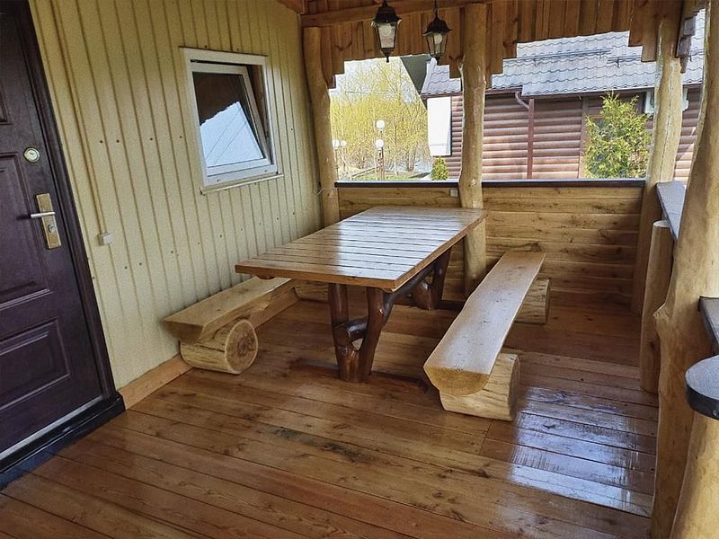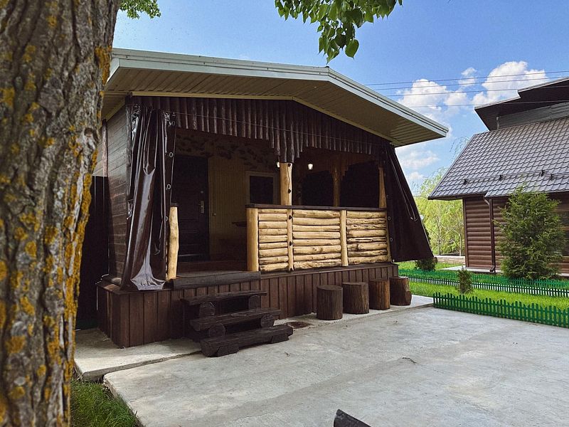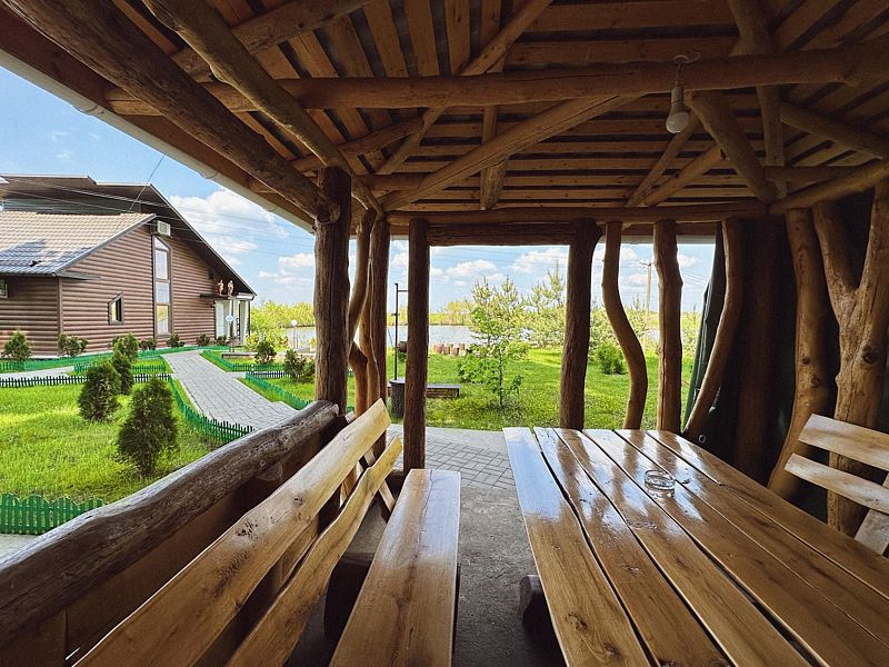 - зона отдыха у беседки из настоящего дуба.