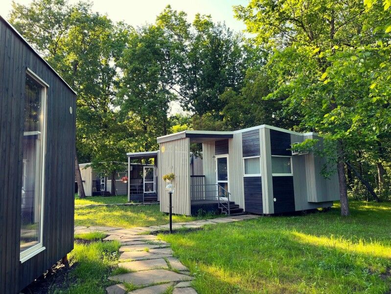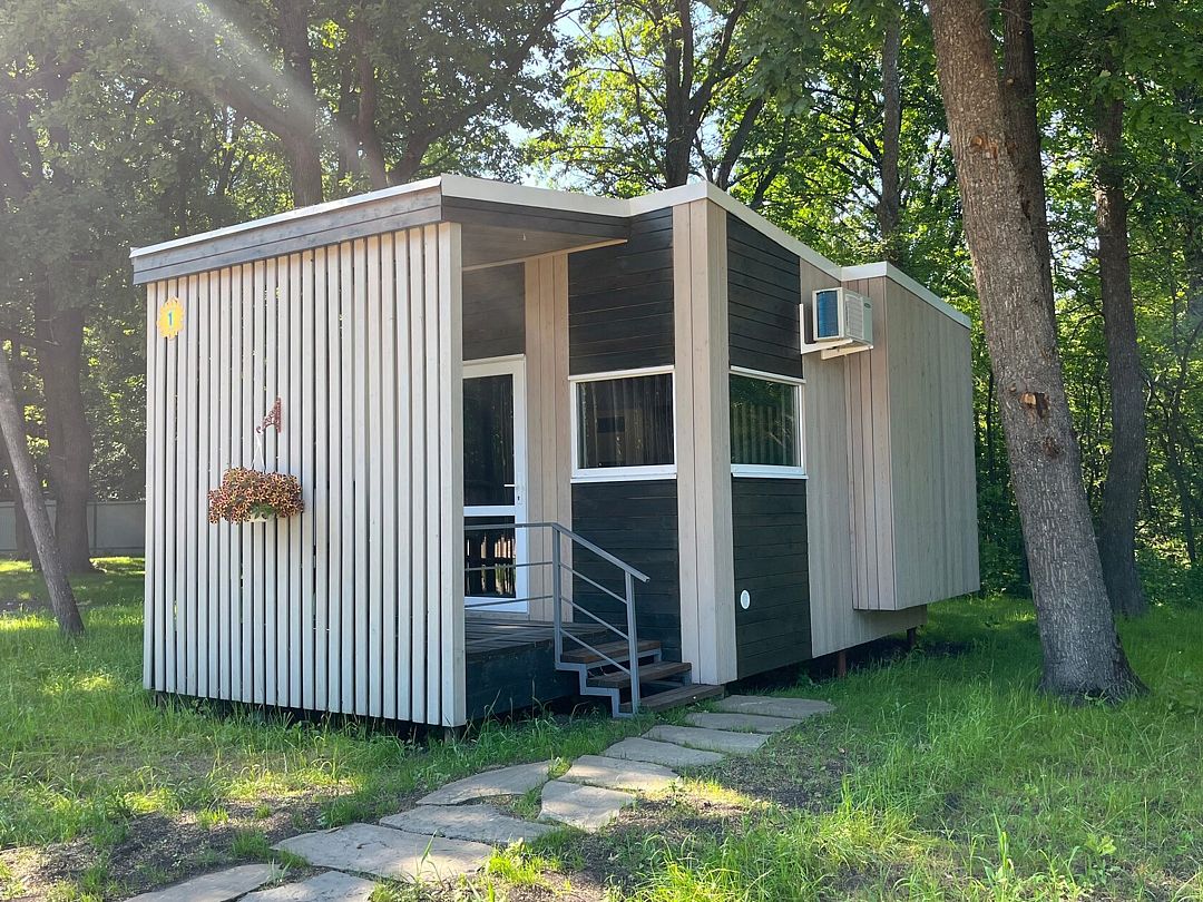 Только вы вдвоем в лесу, в уютном и комфортабельном мини-коттедже, обставленном стильной мебелью, глядя на звезды в небе и искры от костра. Ощущение природы вокруг. И со всеми услугами курорта под рукой.