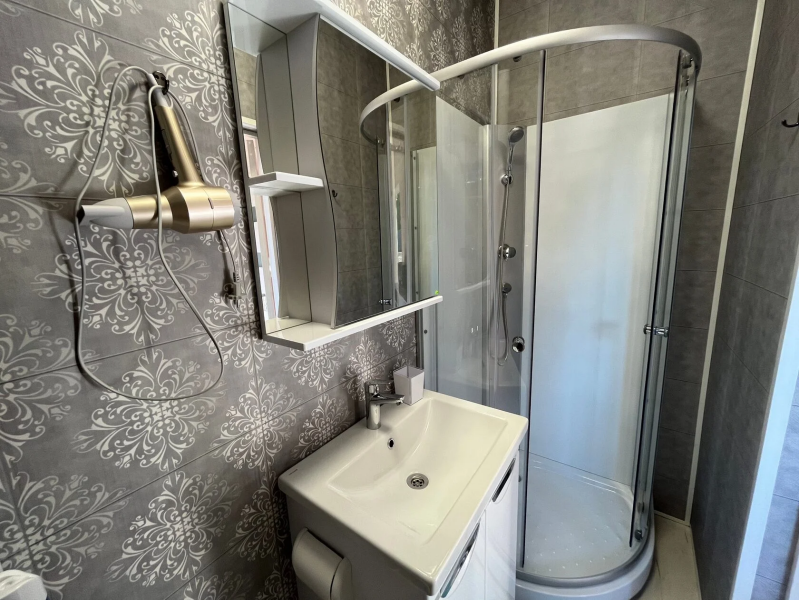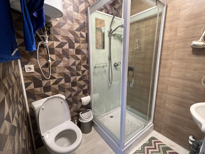 Обставлен стильной мебелью, большой и удобной кроватью, телевизором, чайником, холодильником, микроволновой печью. Ванная комната с туалетом и оборудована душем, после которого сможете воспользоваться феном. Из номера открывается прекрасный вид на чудную природу района.