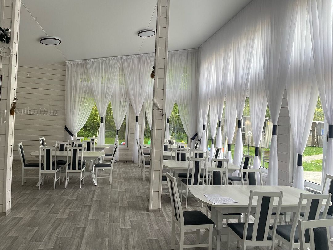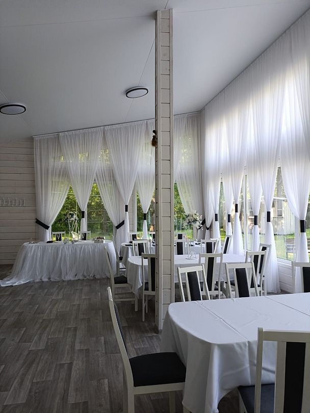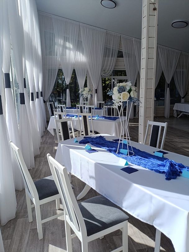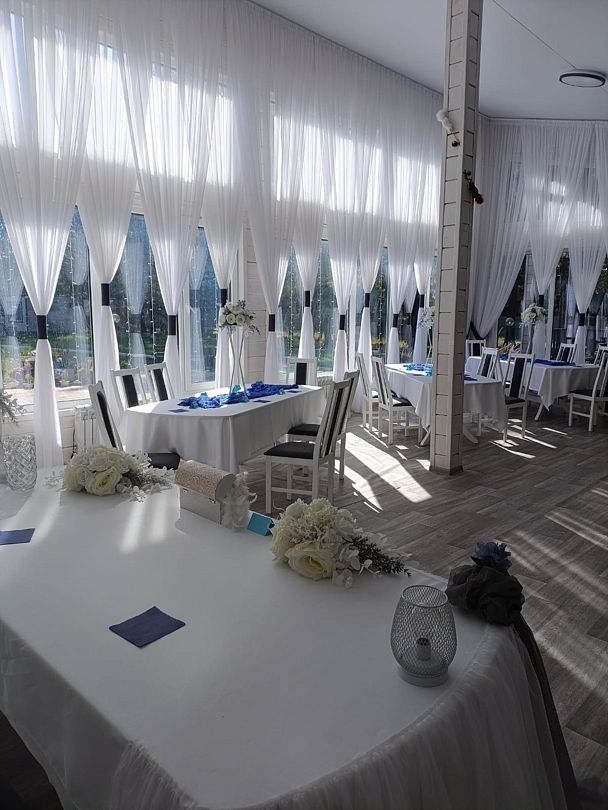 Просторная терраса станет хорошим решением для фуршета, летних мероприятий и выездной свадебной регистрации, а красивый банкетный зал на территории базы отдыха поможет воплотить ваши организаторские идеи и подчеркнуть ценность момента, сделав мероприятие по-настоящему незабываемым.
