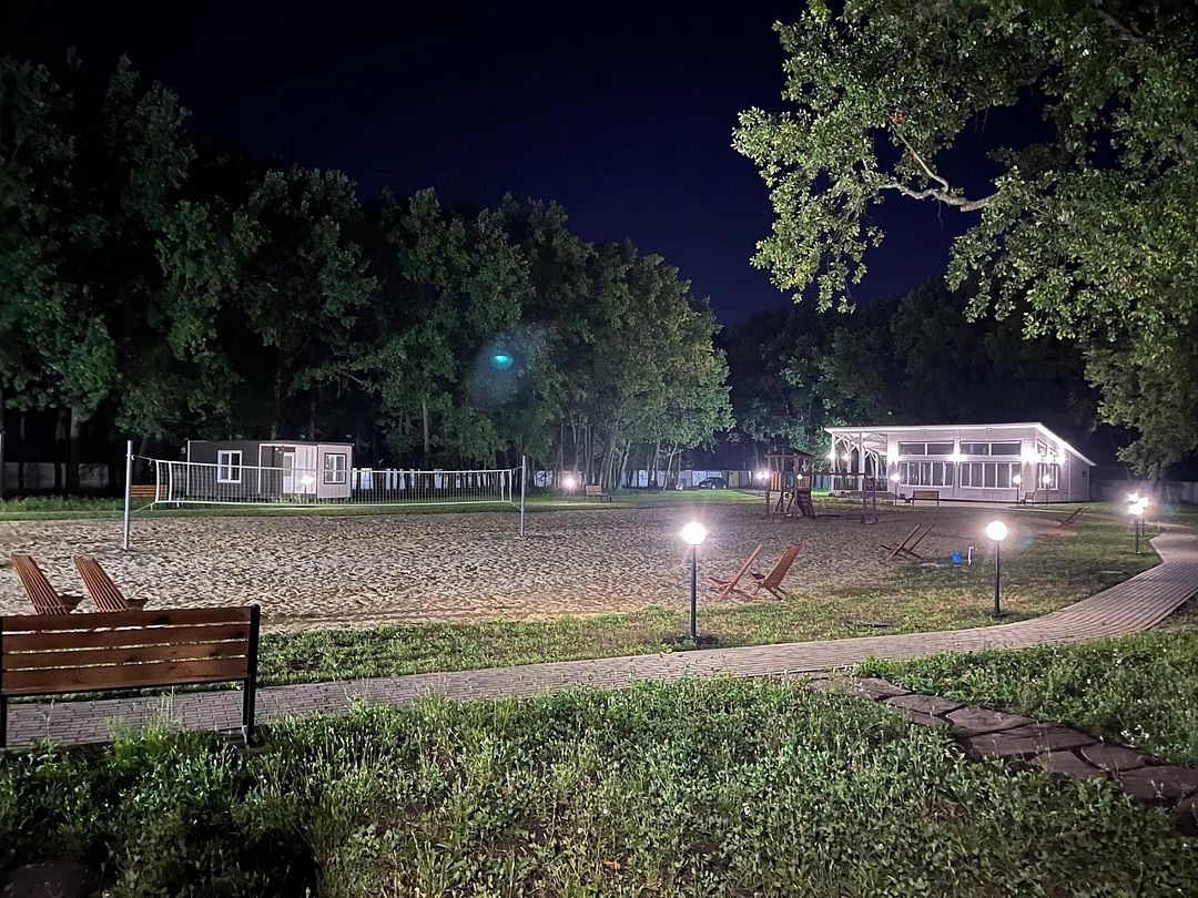 Для детей предусмотрена игровая площадка. Пока ваши малыши заняты играми, вы можете насладиться зоной барбекю, отдохнуть в кафе, сыграть в волейбол с компанией друзей или просто расслабиться на комфортных шезлонгах.