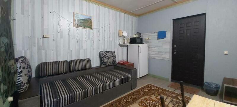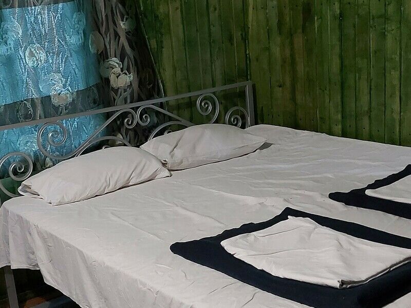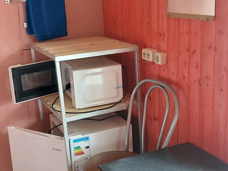 В доме: две отдельные комнаты с выходом на открытую террасу, (двуспальная или односпальные) кровать(и), два стула, тумбочка, вешалка, постельное белье, полотенца, холодильник, СВЧ печь (по дополнительному запросу), чайник. Около дома кованая беседка или столик с лавочками. Домик рассчитан на 4 взрослых и 2 детей (в случае аренды целиком) или 2 взрослых и 1 ребенка (в случае аренды половины дома). Возможна установка раскладушек (за отдельную плату) и детских кроватей (бесплатно по предварительному запросу для детей до 4х лет).