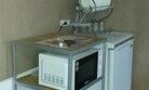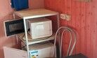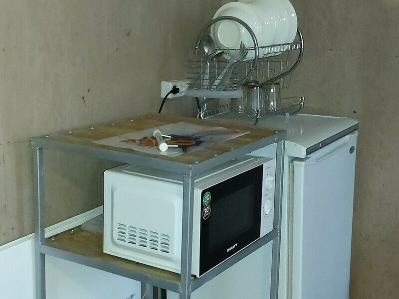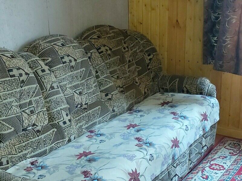Двуспальная кровать, диван, кухня, холодильник, микроволновка, чайник, туалет.