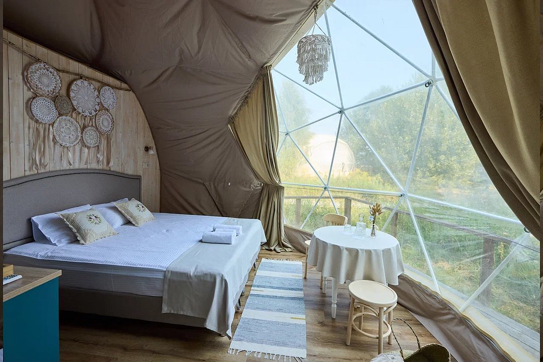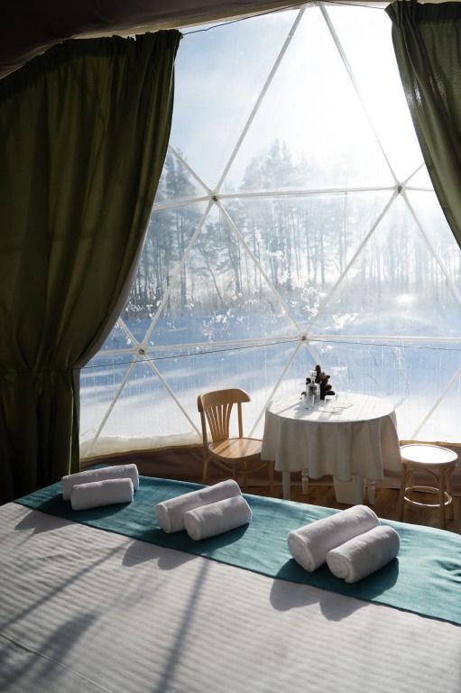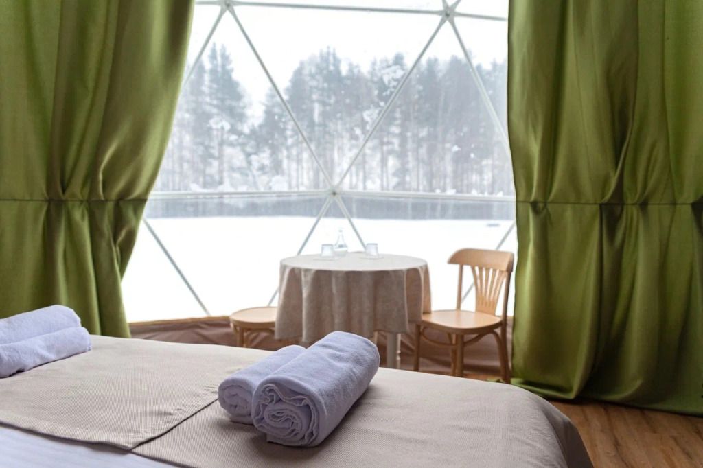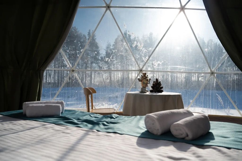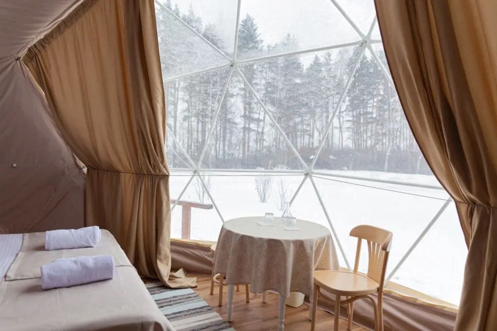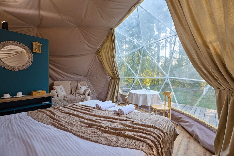 Внутри сферы оборудованы всем необходимым для комфортного размещения до 5 гостей.