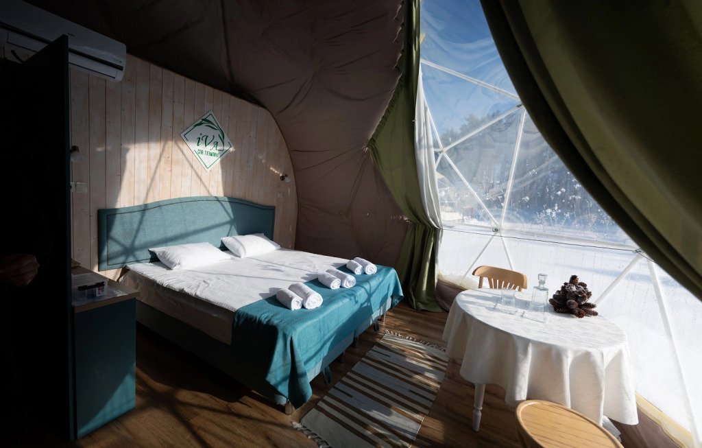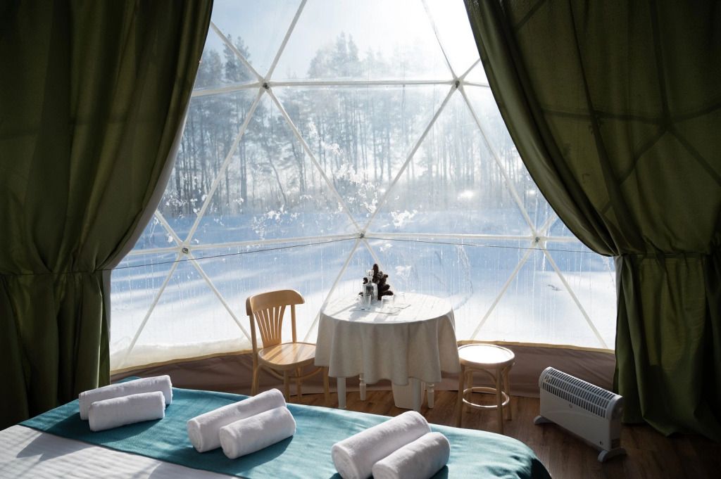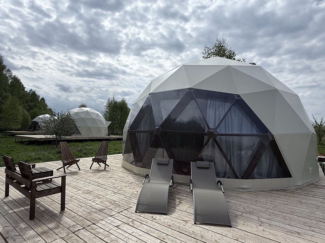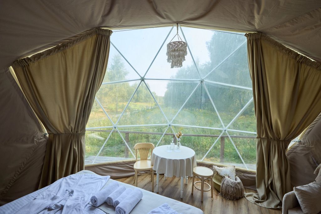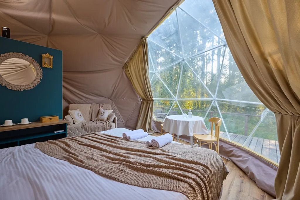 Внутри сферы оборудованы всем необходимым для комфортного размещения до 5 гостей.