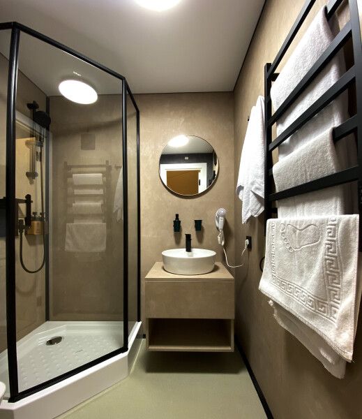 - элегантный санузел с душевой кабиной, с большой раковиной, туалетом, феном для волос и гигиеническими принадлежностями;