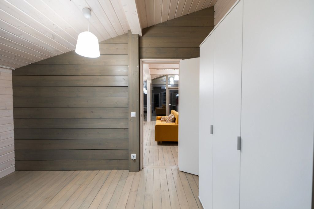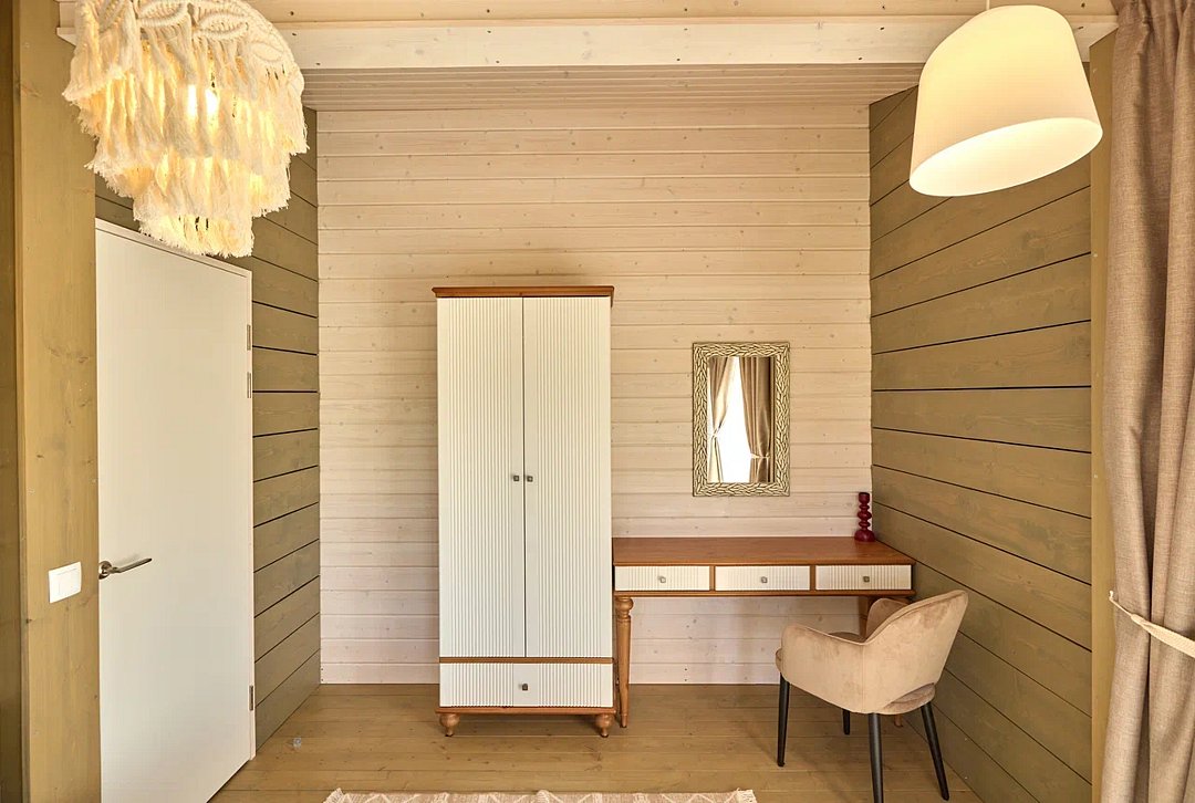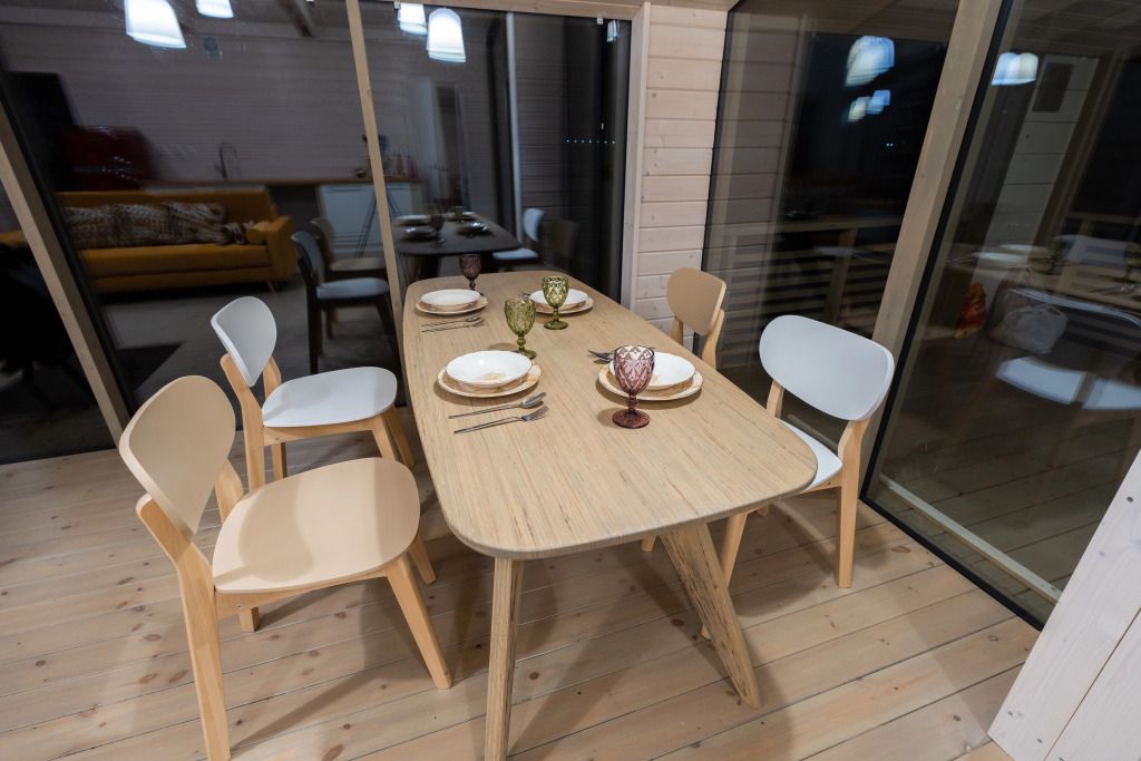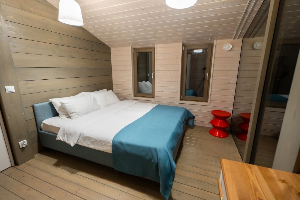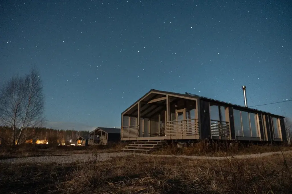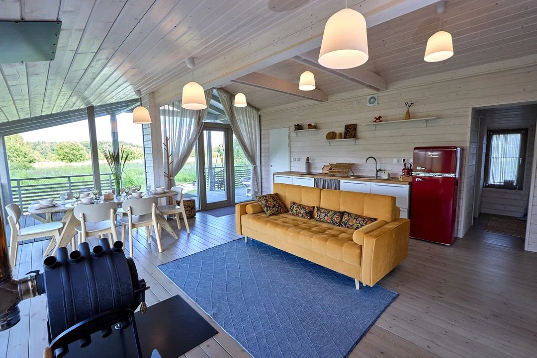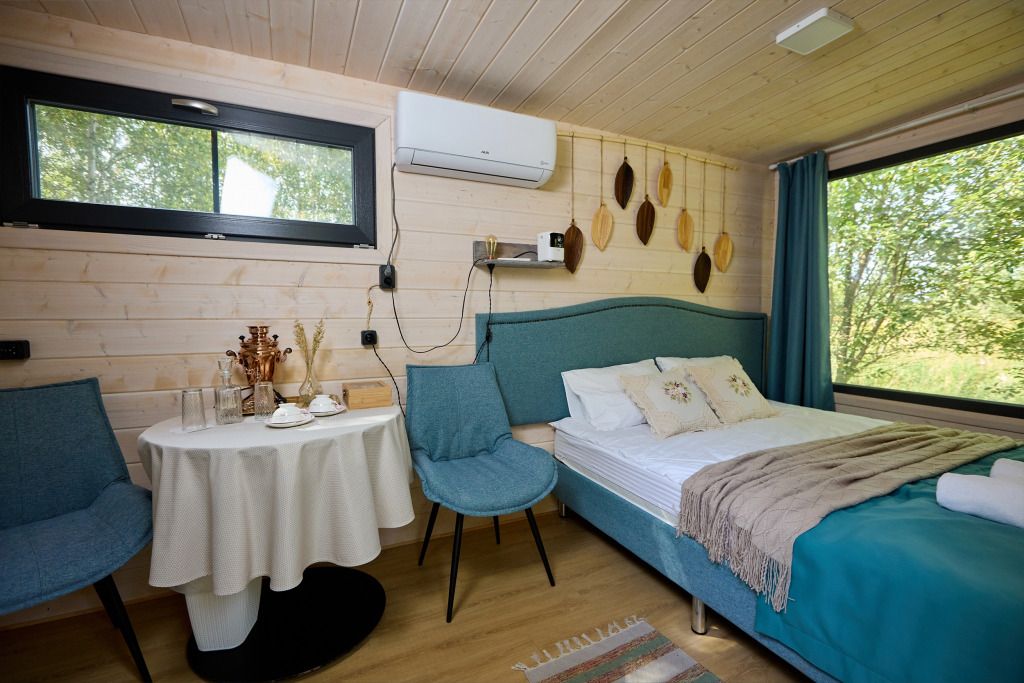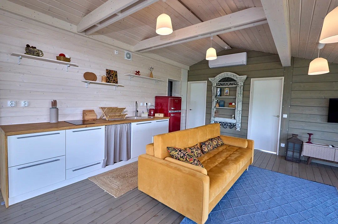 2 спальни, просторная кухня-гостиная с печью, панорамные окна с видом на лес и чудесные закаты. Дома находятся в уединении от других объектов размещения и имеют собственную парковку. Идеальный вариант для длительного проживания.