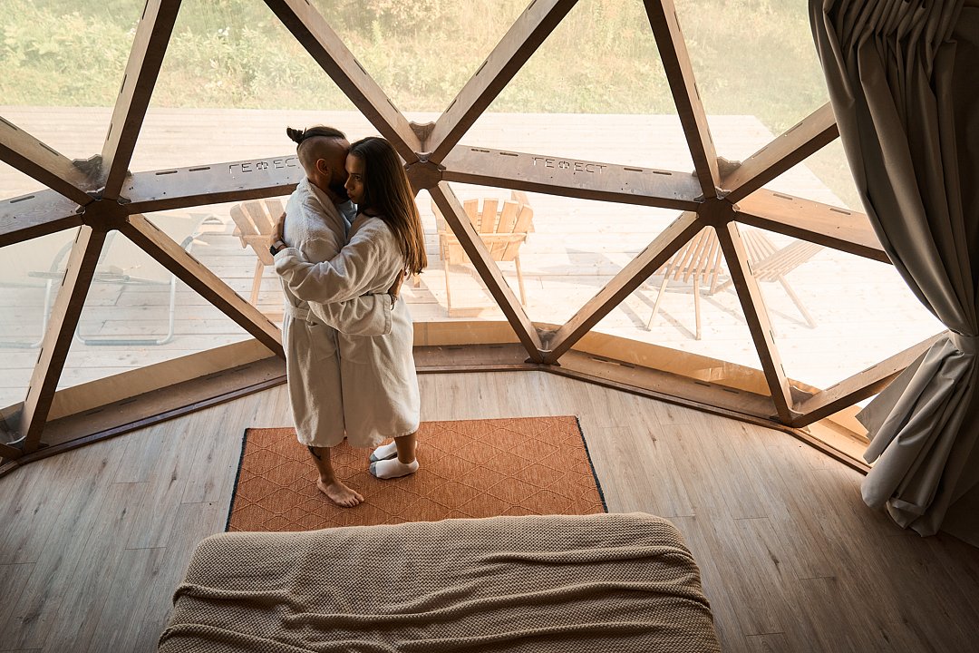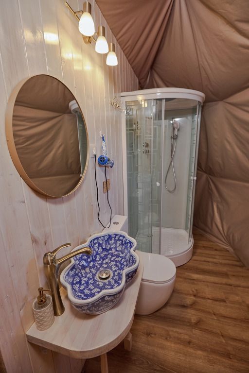 Отдельно стоящие сферы с панорамными видами. Индивидуальная терраса 3 кв.м. 3 сферы с авторским дизайном в новом русском стиле.