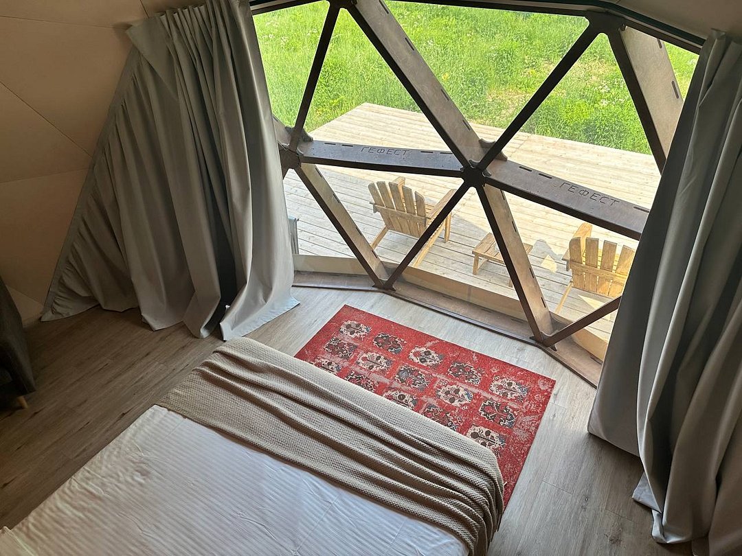 Внутри сферы оборудованы всем необходимым для комфортного размещения до 4 гостей с детьми или 3 взрослых.
