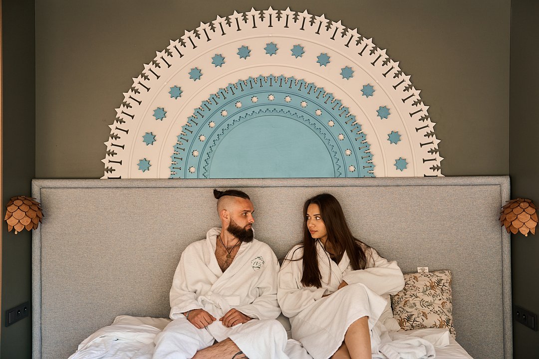 Проведите свой день неспеша. Позвольте себе понежиться в кровати вдвоем. Не торопясь ко времени бежать на завтрак! Сегодня Вы совершите увлекательное путешествие на квадроциклах или неспешную велопрогулку по лесным тропам. После обеда Вас ждет свидание в СПА. Расслабьтесь в теплой купели Фурако, украшенной лепестками роз и свечами, поплавайте в бассейне и настройтесь на вечер вдвоем. Ведь в номере Вас ожидает романтическая игра Pur-Pur.