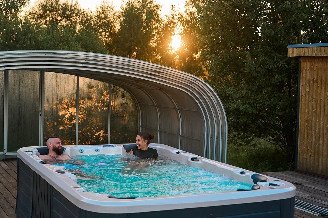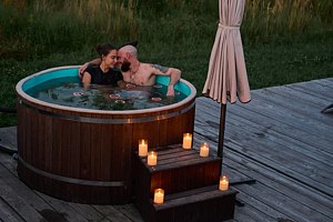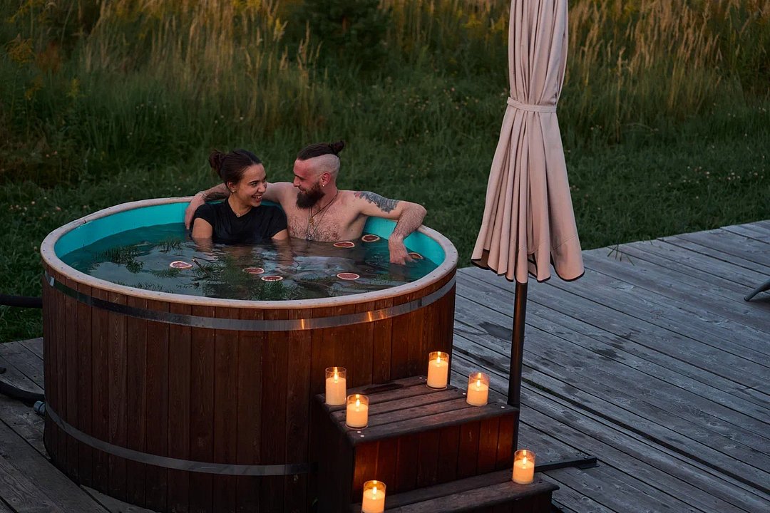 Теплый чан на закате с ароматными лепестками роз и плавающими свечами, создадут неповторимую атмосферу любви, романтики и единения с друг другом.