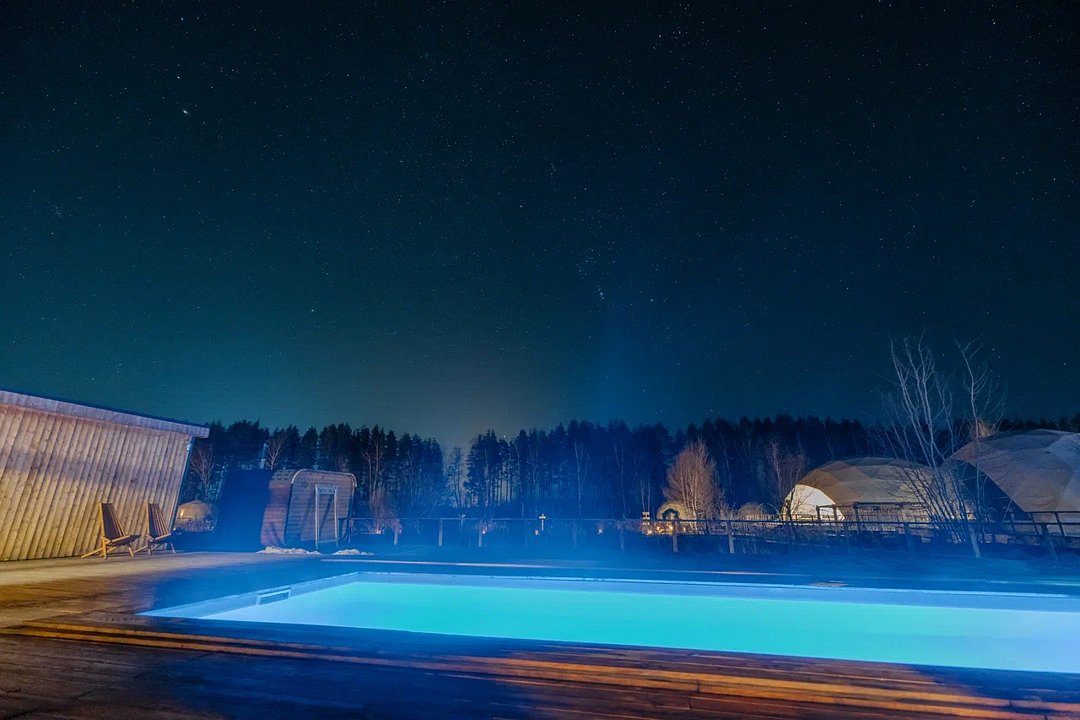 Путешествие с семьейЛучший отдых от города !Были тут семьей , муж и трое деток . Все остались очень довольны . Каждая зона продумана . Панда парк , костровая зона с мангалом , прогулочные дорожки , спа комплекс со всеми удобствами , даже детская игровая , настольный теннис и проектор . Еда невероятно вкусная , прям домашняя . В сфере все самое необходимое было и мы в 5 поместили в самой маленькой ! Обязательно вернемся