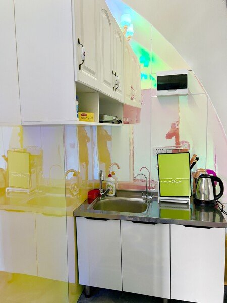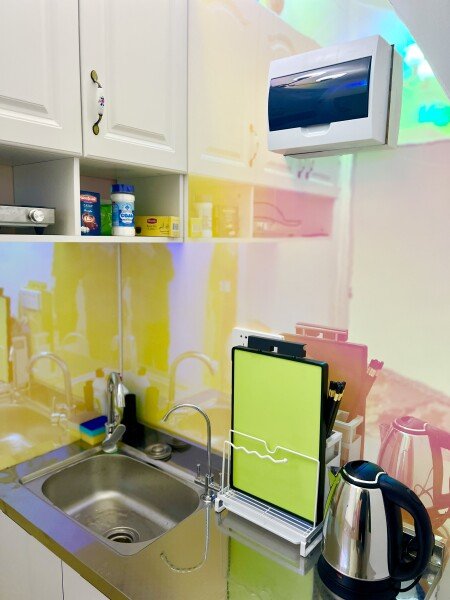 Номер полностью укомплектован: беспроводной интернет, телевизор, мини-холодильник и полностью оборудованная мини-кухня. На мини-кухне есть все необходимые инструменты и основные приправы для приготовления пищи, чтобы вы могли с легкостью проявить свои кулинарные таланты.