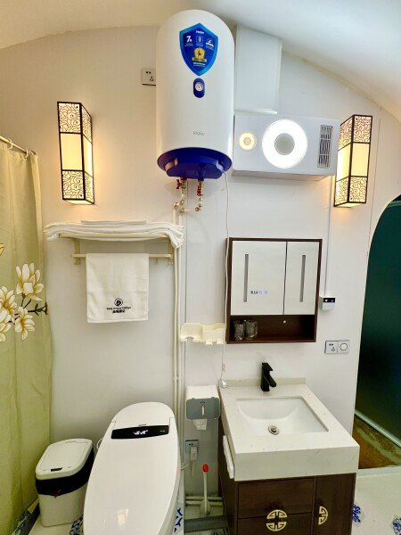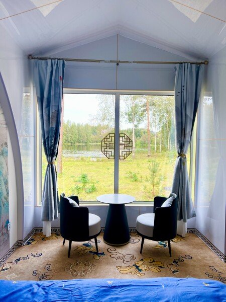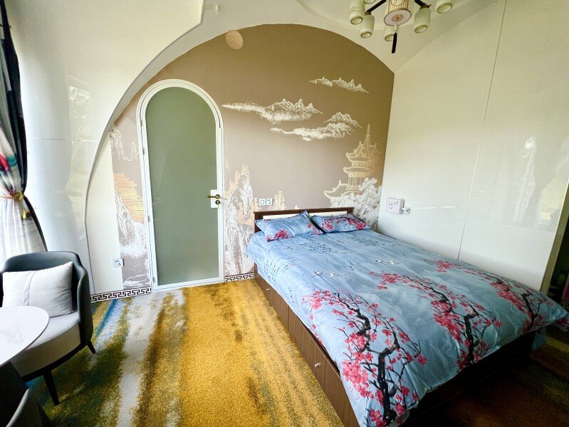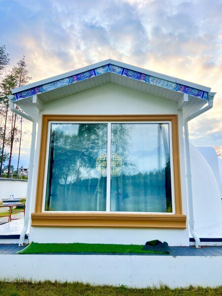 Архитектурная изюминка комплекса — шесть круглых домиков в стиле современного китайского зодчества, каждый назван в честь известного города: Пекин, Шанхай, Вэньчжоу, Харбин, Шэньчжень и Саньи. В них предусмотрено все для комфортного проживания: теплые номера, мультимедиа и быстрый Wi‑Fi, мини‑кухни с холодильниками и частные ванные комнаты с современной сантехникой.
