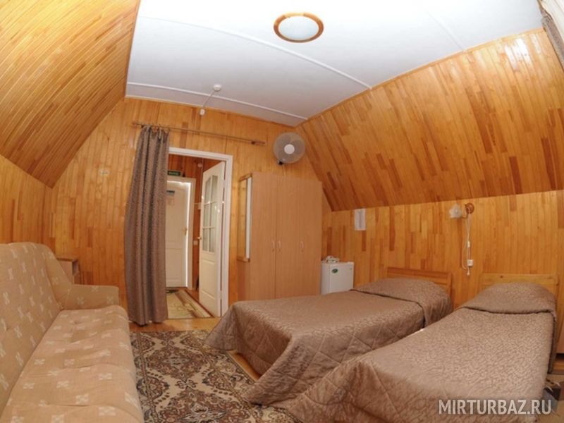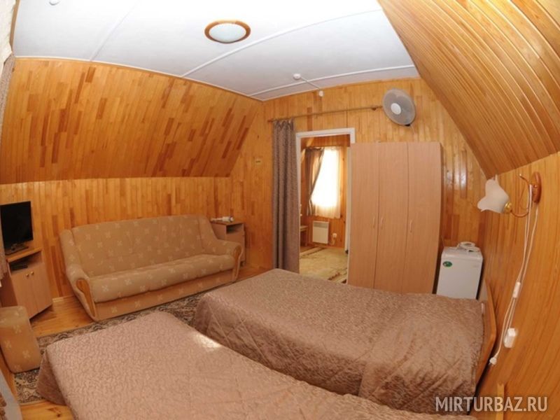 В номере: Две односпальные кровати, санузел, душевая кабина, ТВ, чайник, холодильник, комод, диван.