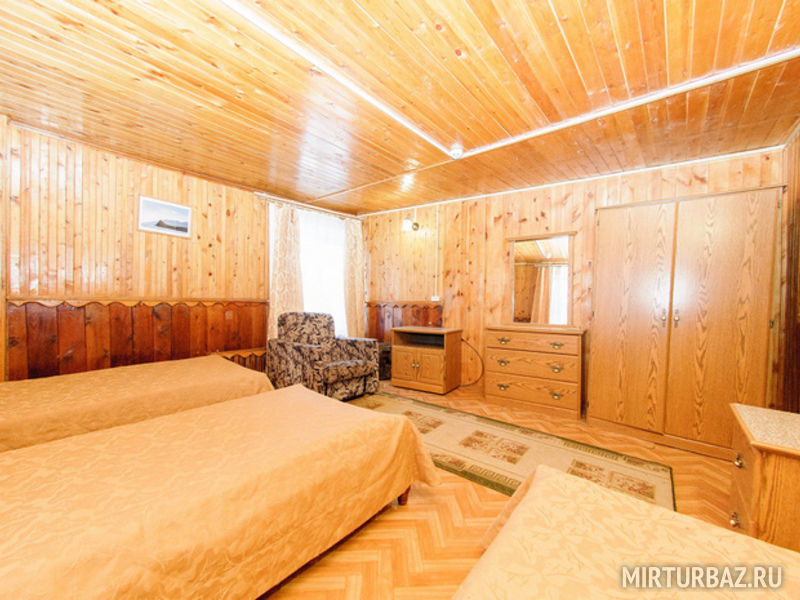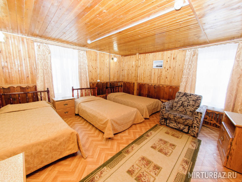 В номере: Три односпальные кровати, санузел, душевая кабина, ТВ, чайник, шкаф, комод, кресло.