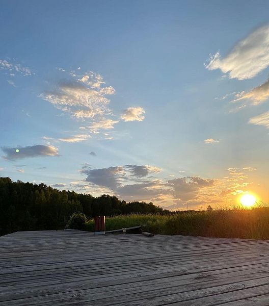 Небольшой отдельно стоящий домик со своим пирсом и видом на озеро (максимально на 2 человека).