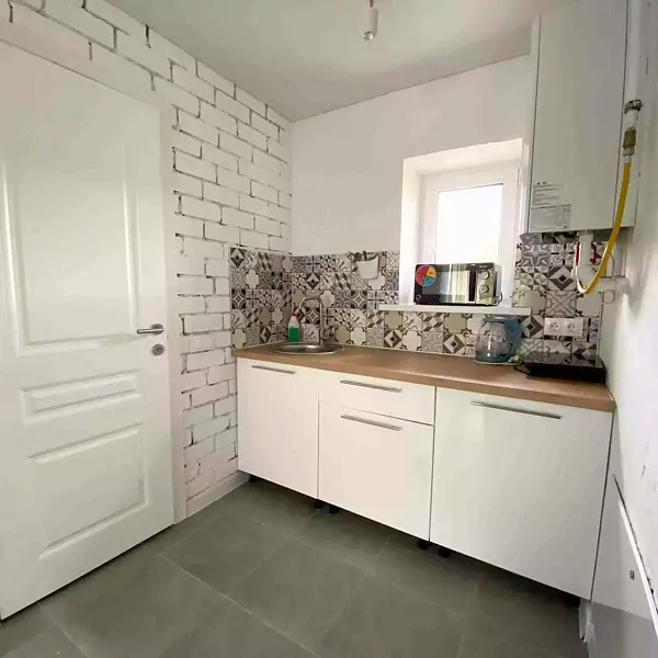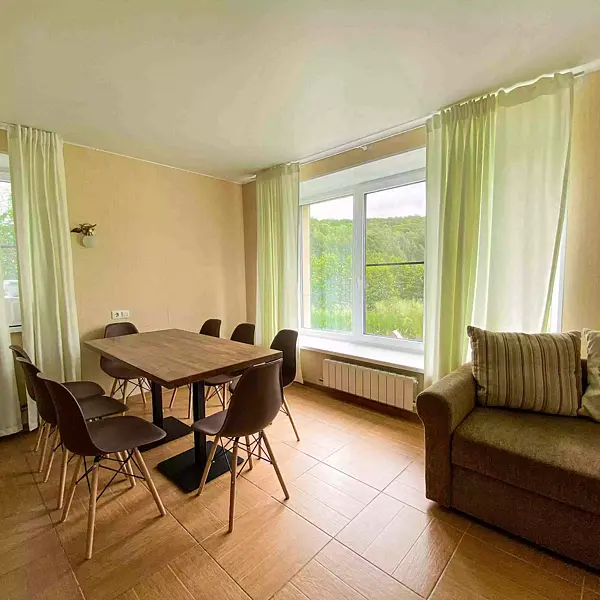 Это половинка домика с индивидуальным входом — однокомнатный домик на семью из 4-х человек.