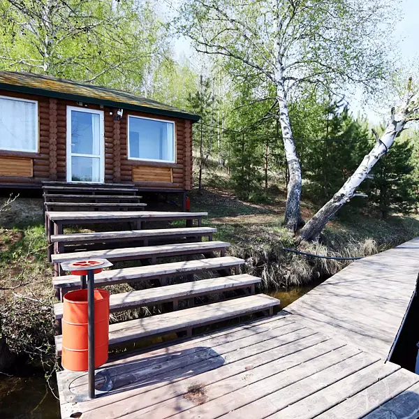 Половинка домика с индивидуальным входом 13б с собственным пирсом и видом на озеро (максимально на 7 человек).