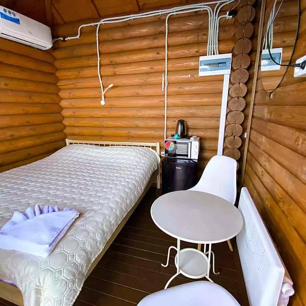 Это половинка домика с индивидуальным входом. Однокомнатный домик на 2 человека.
