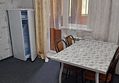 Кухонная зона: электроплита, холодильник, обеденный стол.