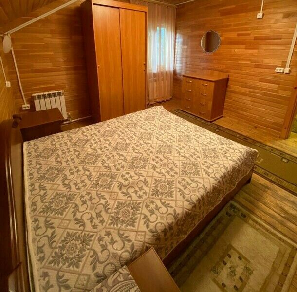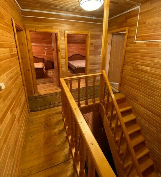 1 этаж: кухня-гостинная, раскладной диван, с/у, 2 этаж: 3 спальни с 2 спальными кроватями,