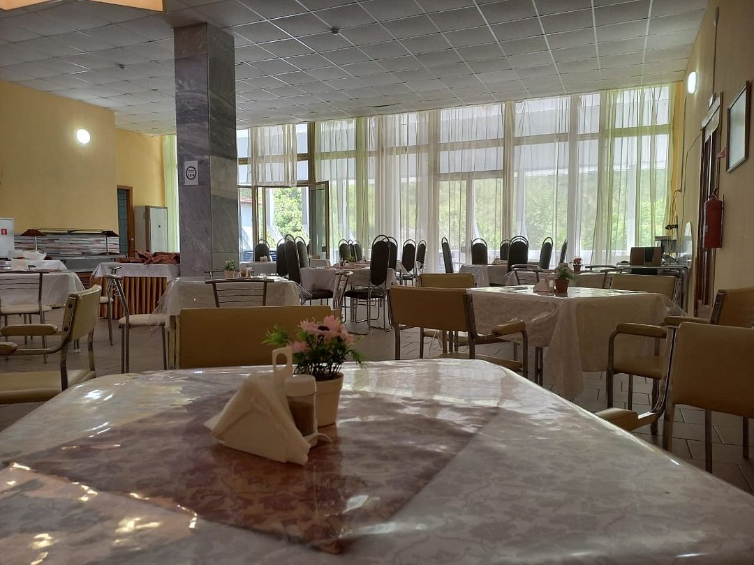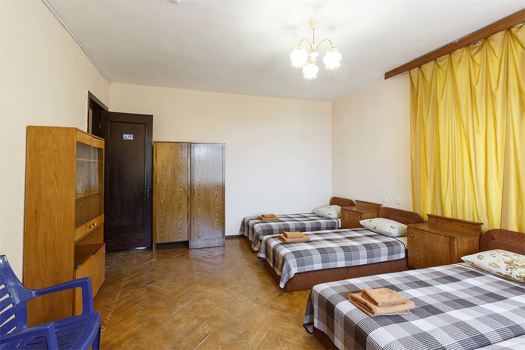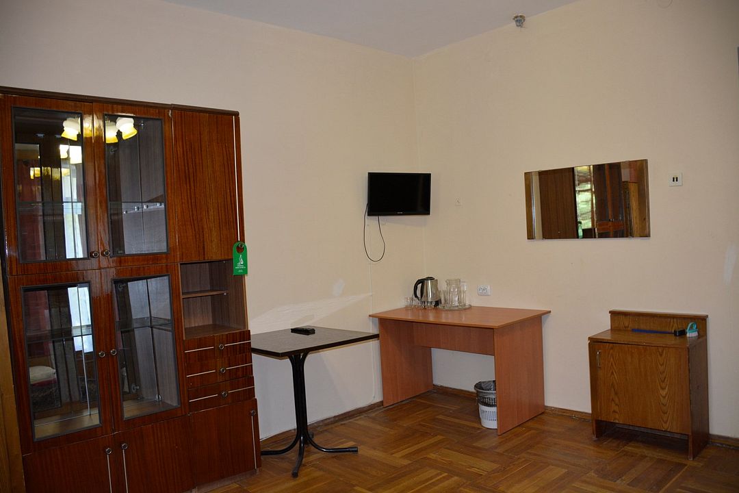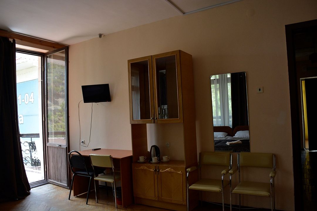 Площадь номера – 18кв.м. В каждом номере: необходимая мебель, холодильник, телевизор и кондиционер. Номера находятся в блоке. На два номера общий коридор в котором расположены два санузла. Номера однокомнатные, расположены на 1,2,3 этажах. Балкон с видом на горы. В номере два основных и два дополнительных места.Услуги и удобства