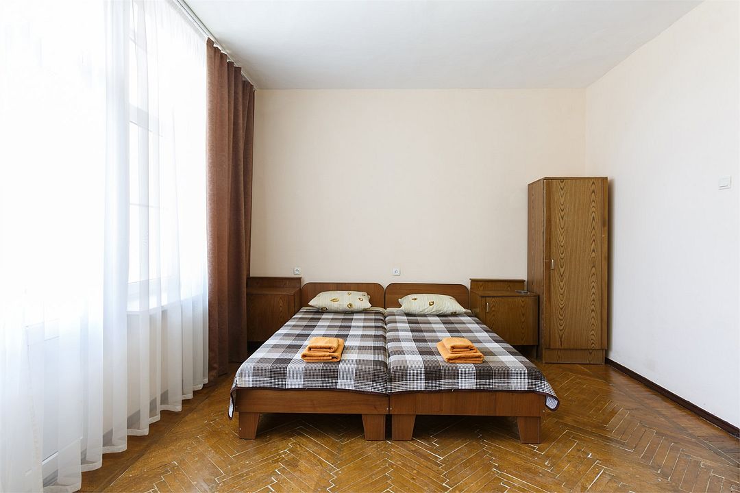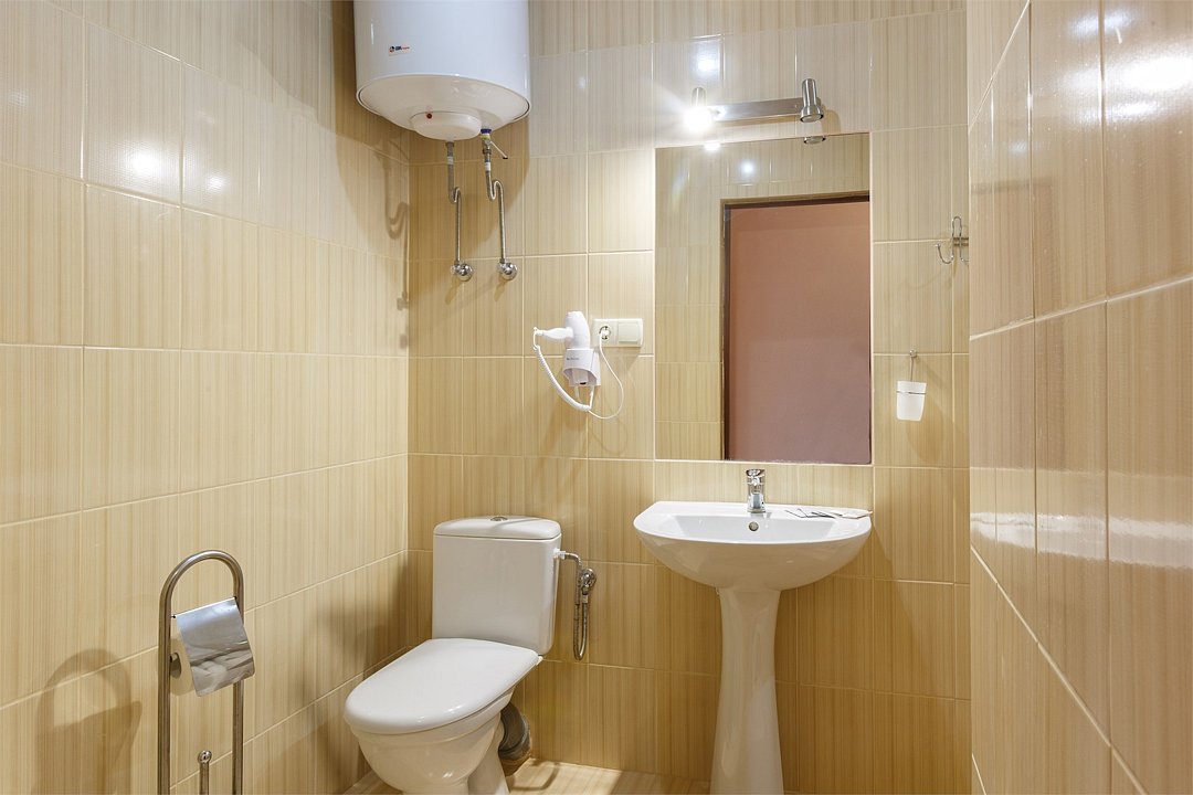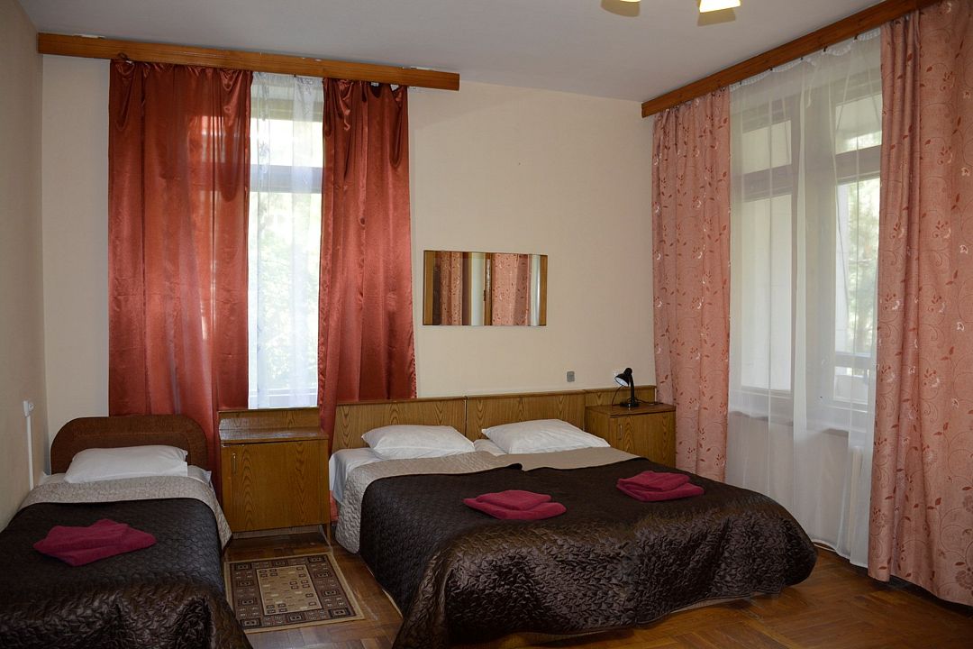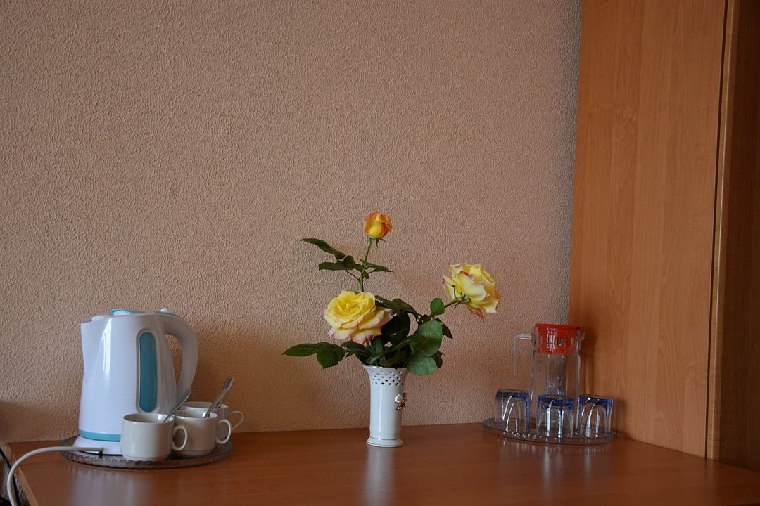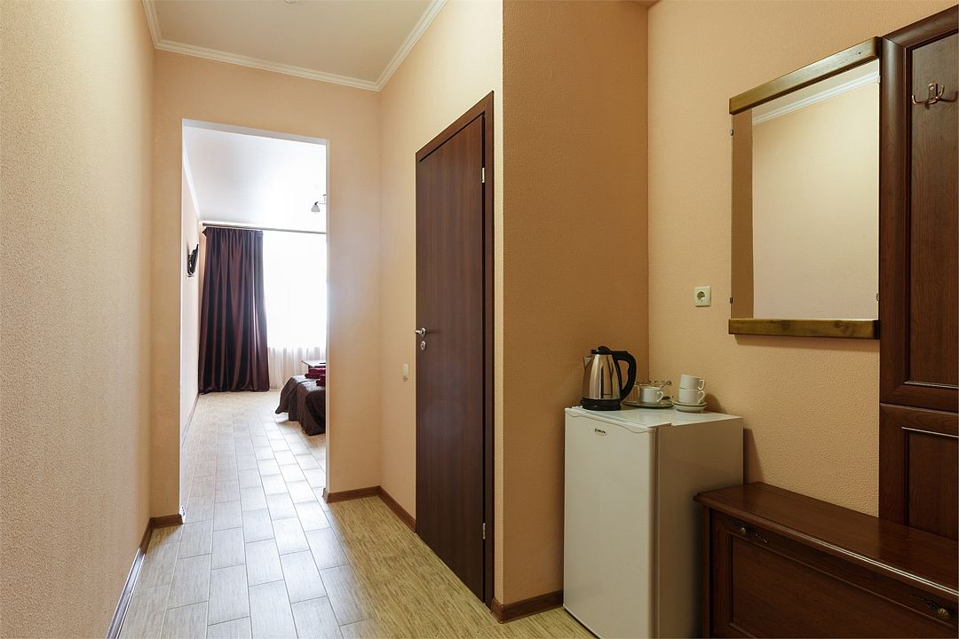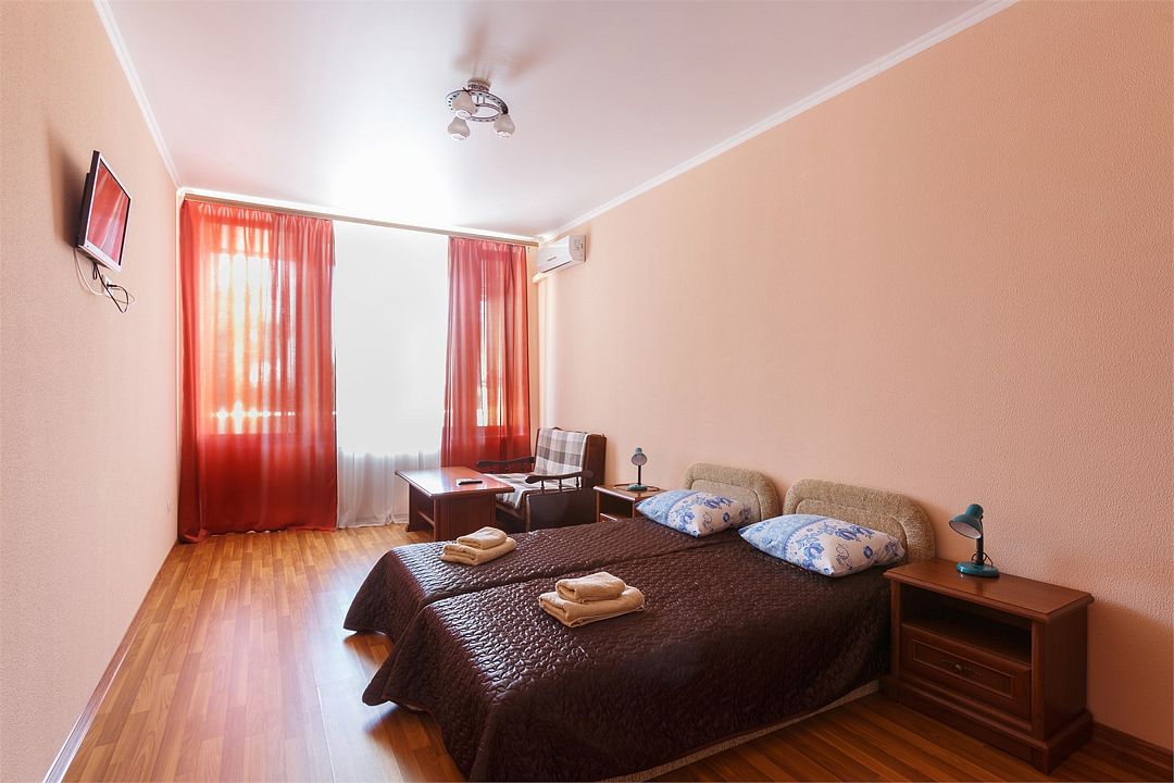 Площадь номера – 22 кв.м В каждом номере: две односпальные кровати, маленький диван или кресло, набор необходимой мебели, телевизор, кондиционер, холодильник; санузел. В номере два основных и одно дополнительное место.Услуги и удобства