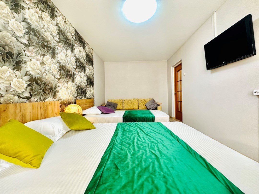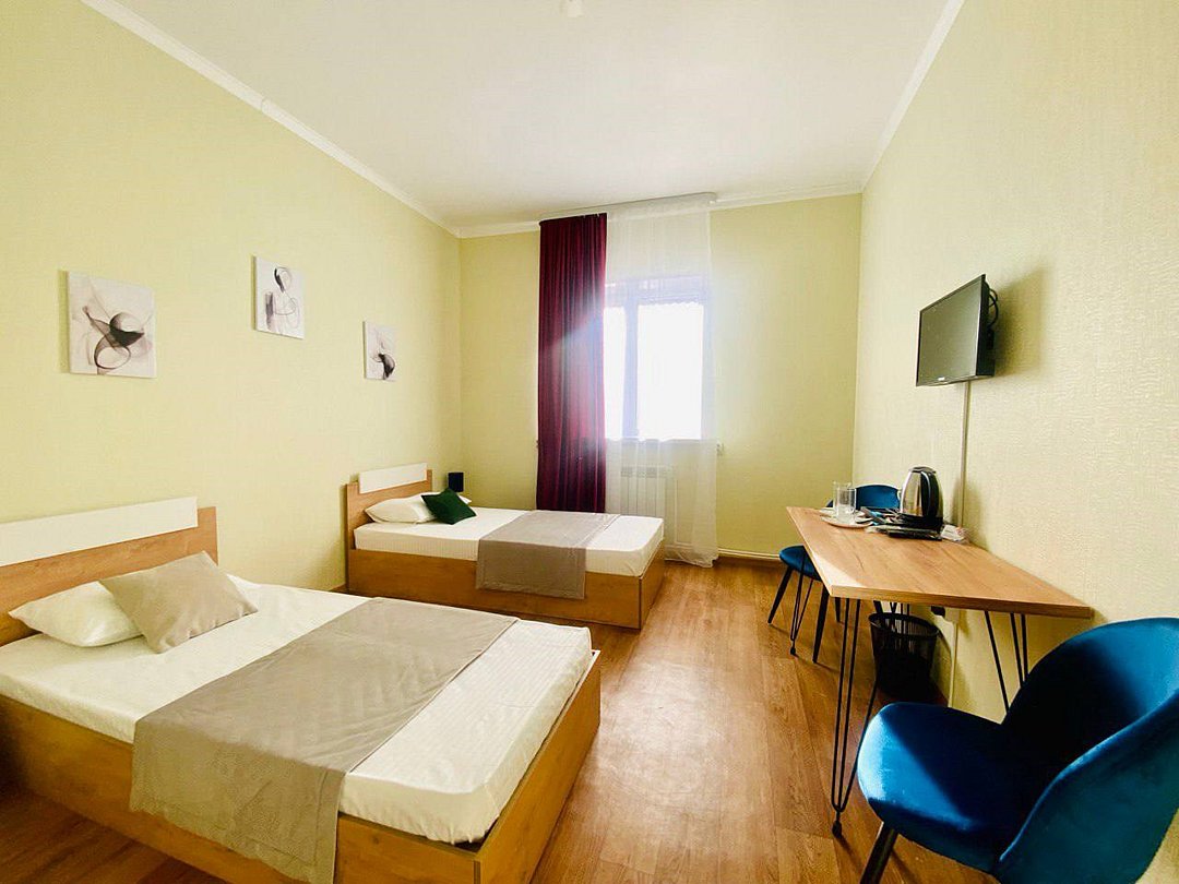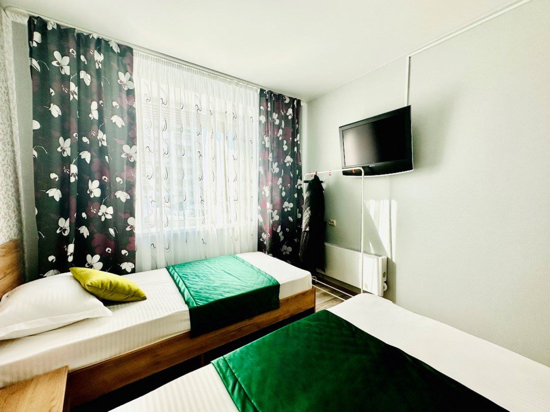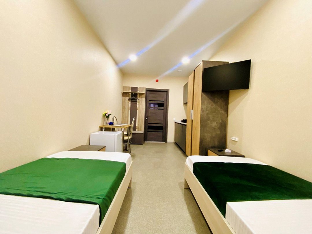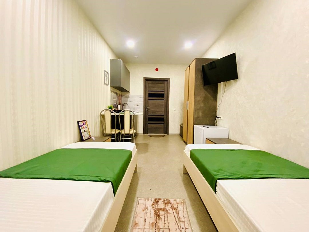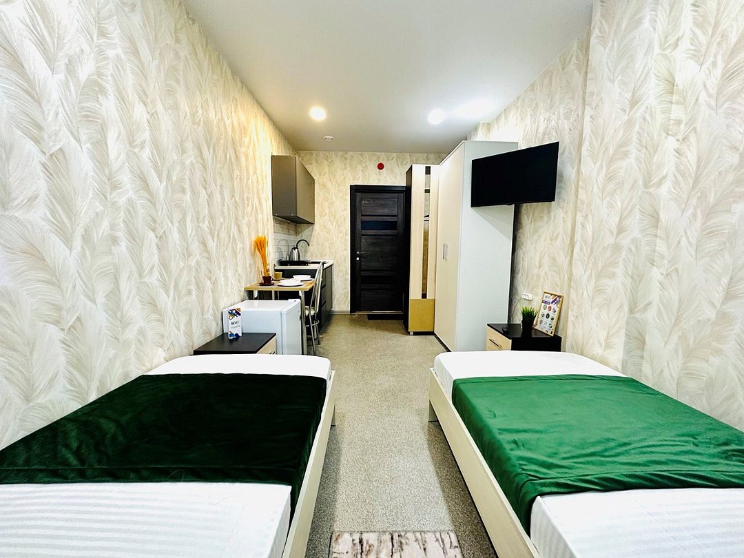 кабельное телевидение, Wi-Fi, фен, электронные замки, плита для приготовления пищи, микроволновая печь, утюг, душевая кабина, санузел, водонагреватель, банные полотенца, косметические средства, две полутораспальные кровати, стулья, шкаф для одежды, вешалки, обеденный стол, чайный набор, набор посуды, стиральная машина, чайник, унитаз, раковина, обеденная зона, отопление, вид на город, раздельный санузел, общая ванная комната, ламинат, кухонная посуда, стаканы, кухонная утварь, столовые приборы, внешняя ванная комната, стол, тумба, туалетные средства, санузел на этаже, цифровое тв, телевизор с плоским экраном, мини-холодильник, мини-кухня, кухонный уголок, душ на этаже, телевизор со Smart TV, номер для некурящих, онлайн-регистрация до заезда, набор для приготовления чая и кофе, мыло, можно с питомцамиВ номере