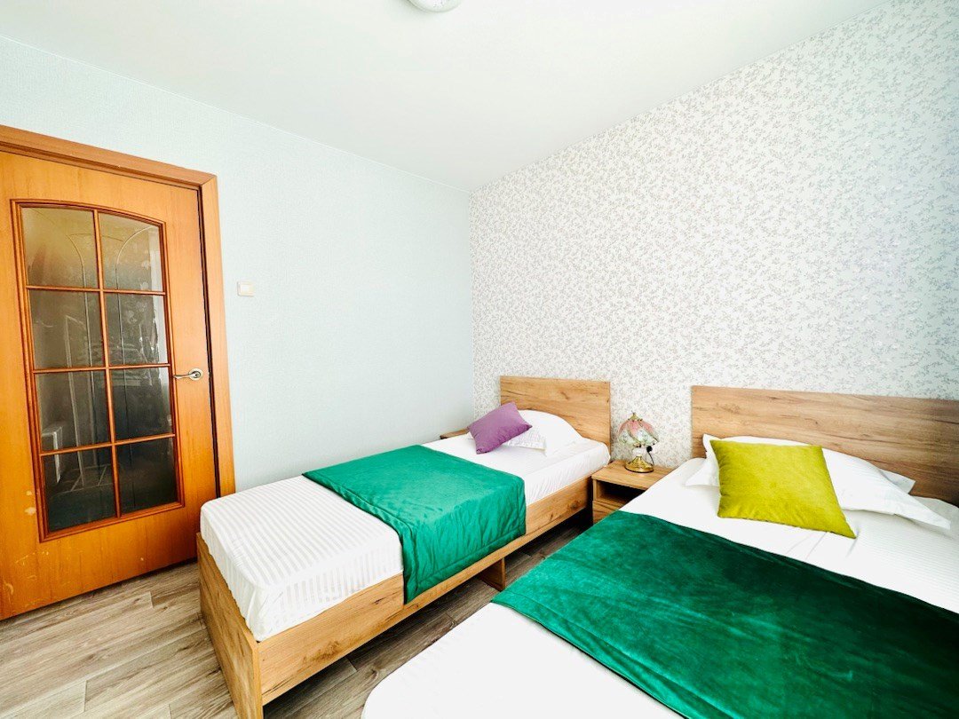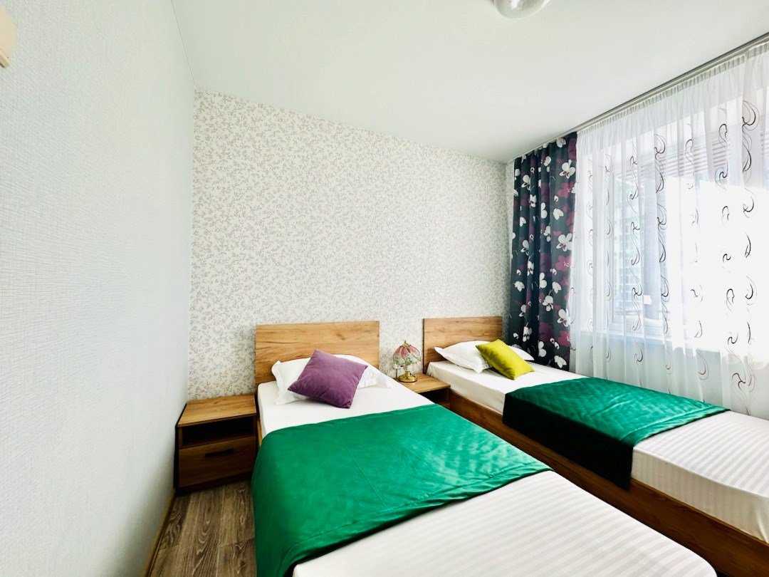 Wi-Fi, холодильник, фен, электронные замки, плита для приготовления пищи, микроволновая печь, утюг, ванная комната, ванна, санузел, банные полотенца, косметические средства, две односпальные кровати, гладильная доска, тумбы, вешалки, кухня, чайный набор, набор посуды, стиральная машина, чайник, унитаз, обеденная зона, отопление, вид на город, раздельный санузел, ламинат, кухонная посуда, стаканы, столовые приборы, внешняя ванная комната, туалетные средства, туалет, сушилка для белья, телевизор с плоским экраном, кухонный уголок, телевизор со Smart TV, номер для некурящих, онлайн-регистрация до заезда, духовка, набор для приготовления чая и кофе, вешалки-плечики, мыло, онлайн-регистрация, можно с питомцамиВ номере