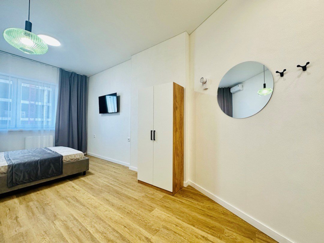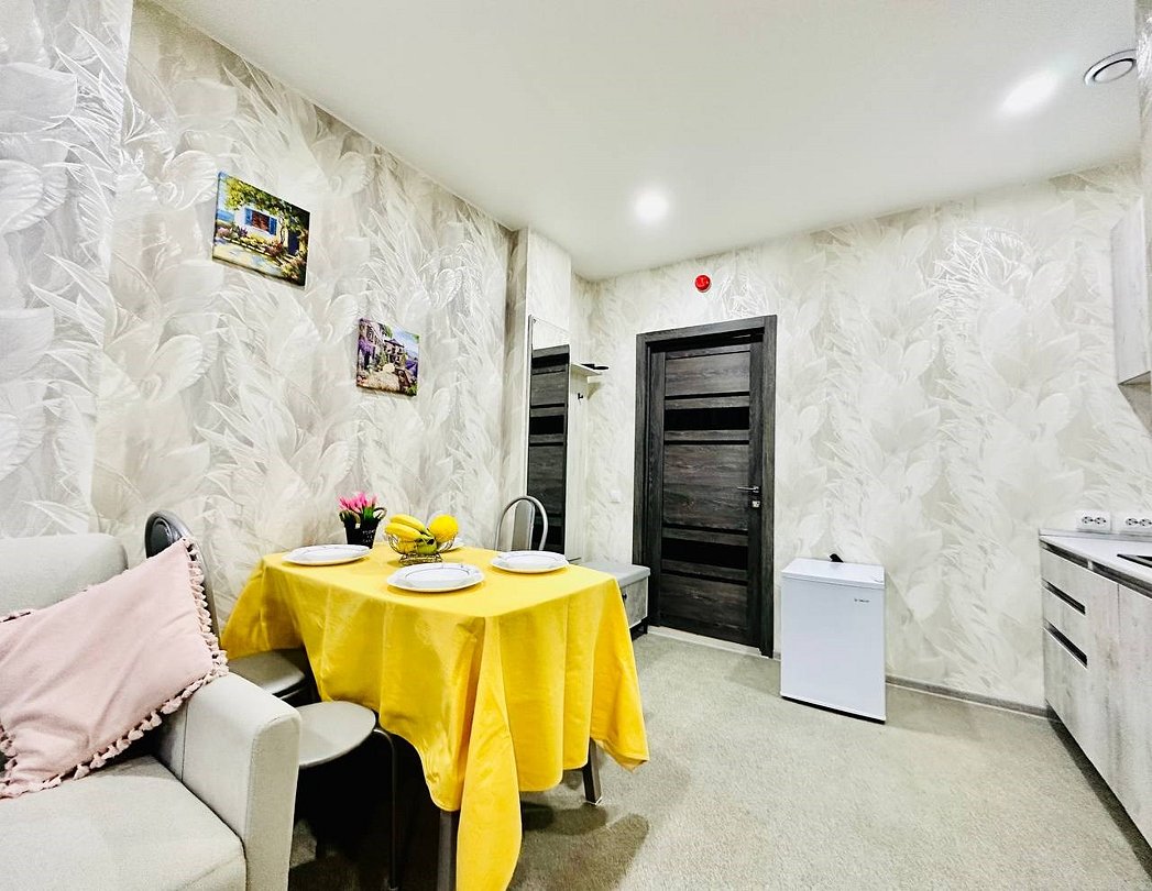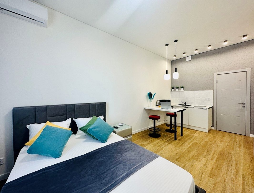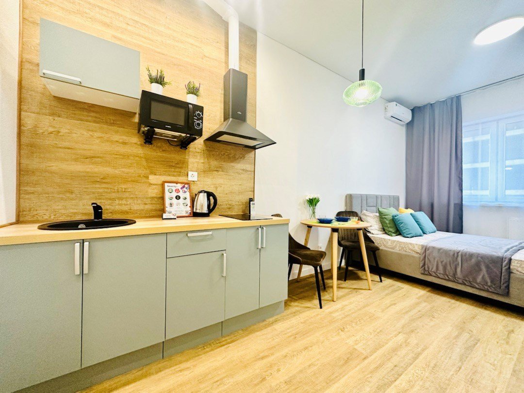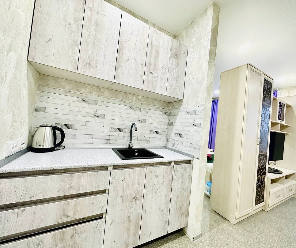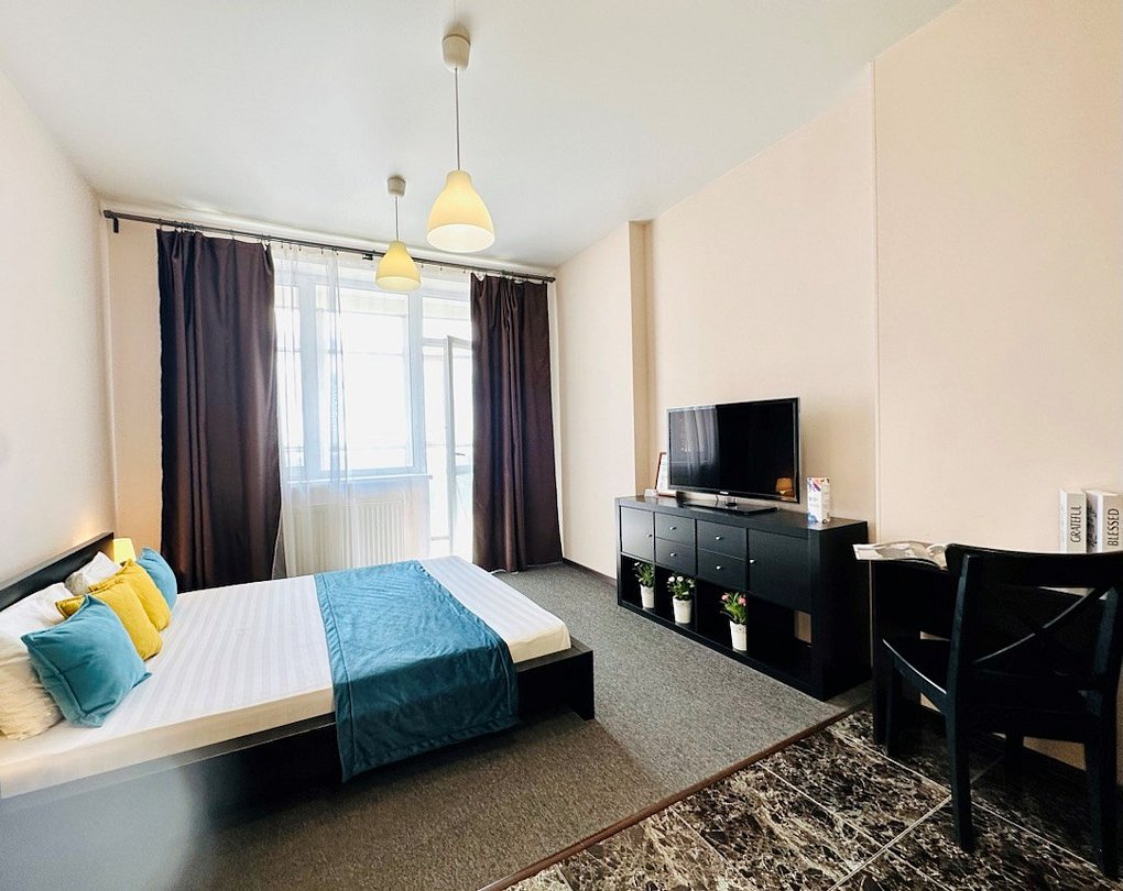 телевизор, кабельное телевидение, Wi-Fi, холодильник, кондиционер, фен, электронные замки, плита для приготовления пищи, микроволновая печь, утюг, ванная комната, душевая кабина, санузел, банные полотенца, гигиенические средства, косметические средства, двуспальная кровать, гладильная доска, стулья, шкаф для одежды, вешалки, обеденный стол, зеркало, кухня, чайный набор, набор посуды, стиральная машина, чайник, унитаз, раковина, косметическое зеркало, обеденная зона, отопление, вид на город, ламинат, кухонная посуда, стаканы, кухонная утварь, столовые приборы, туалетные средства, туалет, сушилка для белья, цифровое тв, телевизор с плоским экраном, кухонный уголок, телевизор со Smart TV, номер для некурящих, онлайн-регистрация до заезда, набор для приготовления чая и кофе, мини-бар (платно), онлайн-регистрация, можно с питомцамиВ студии