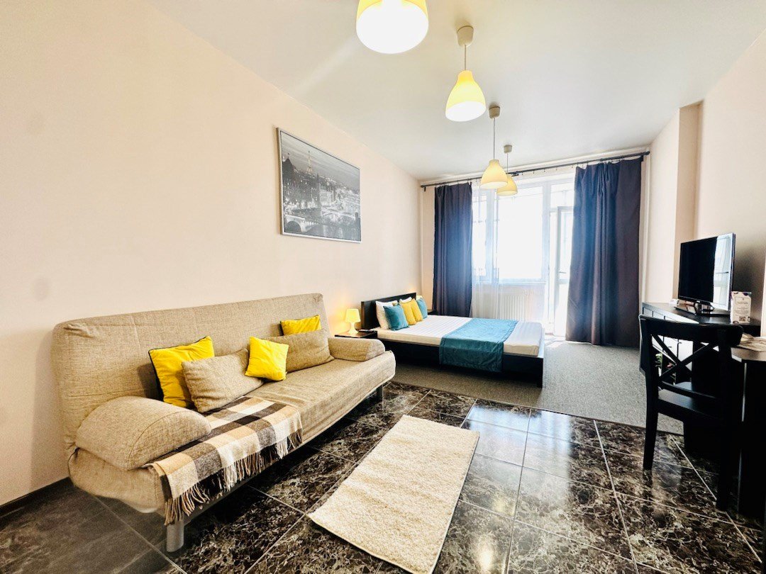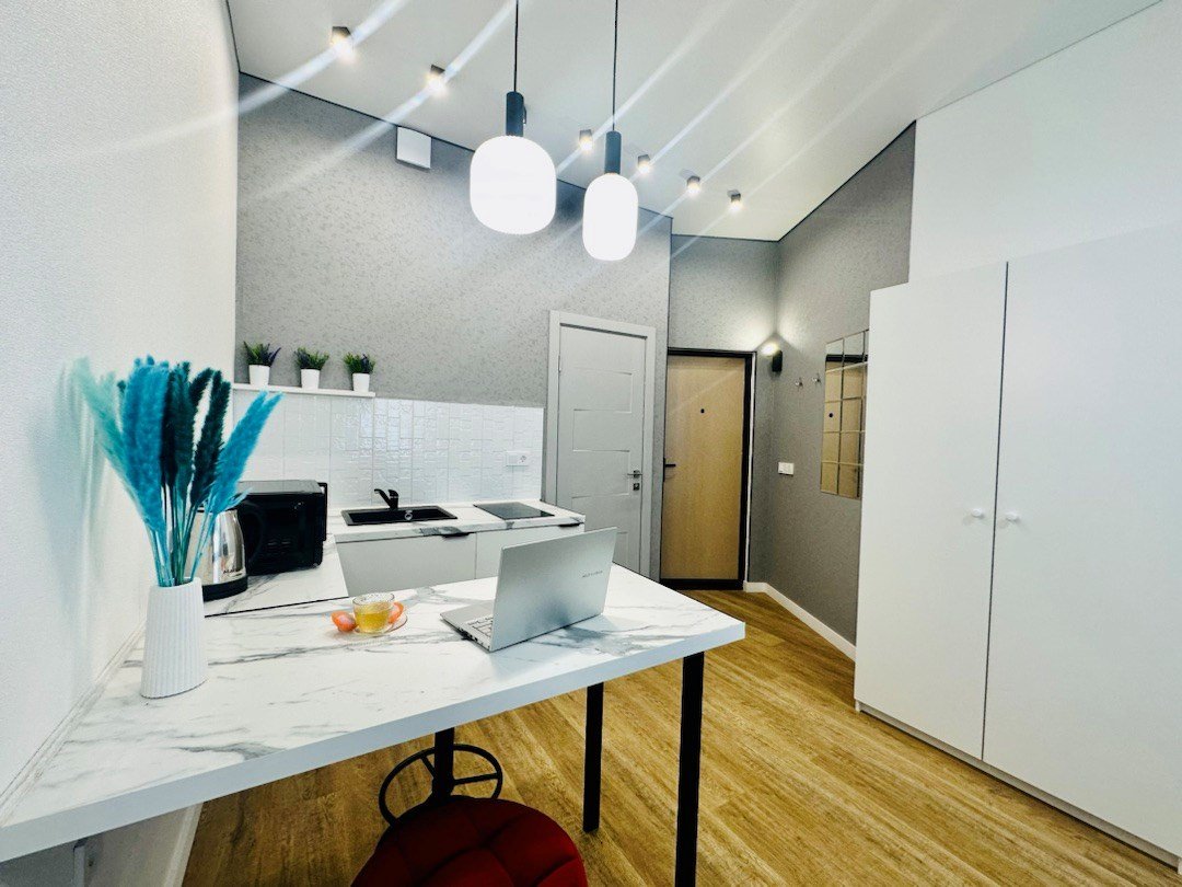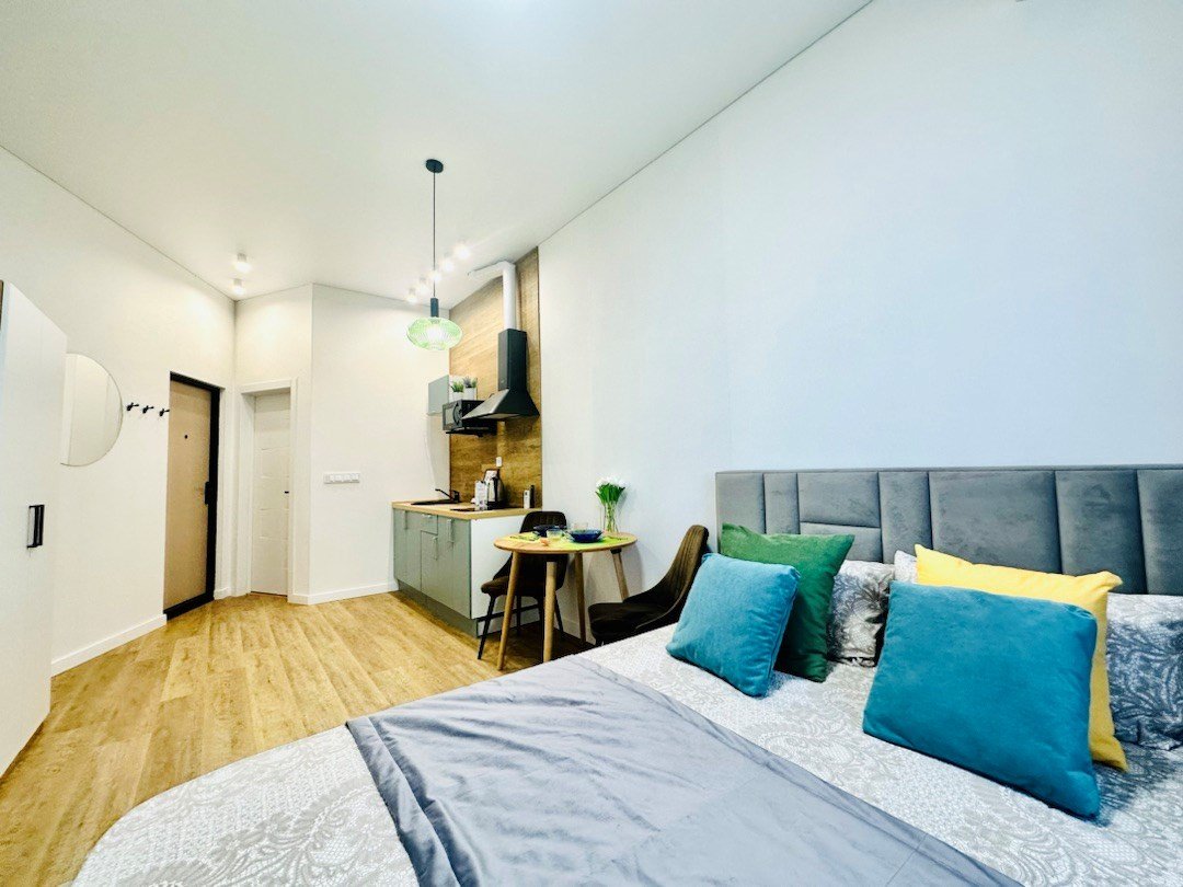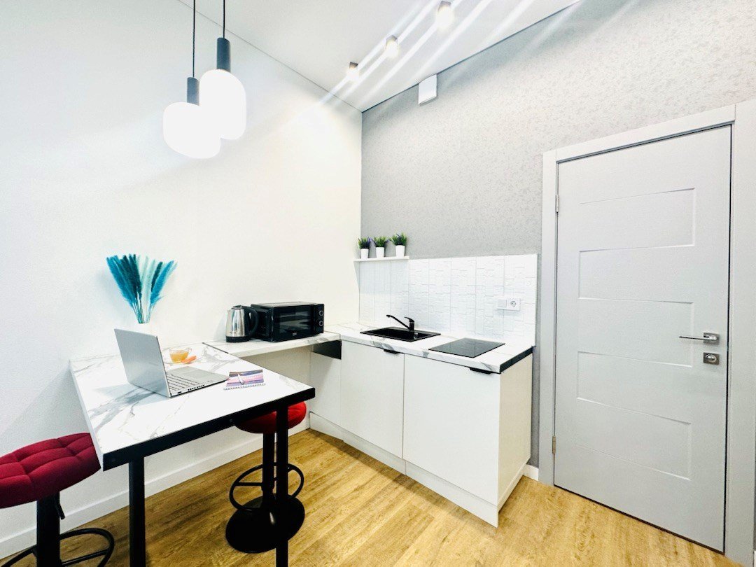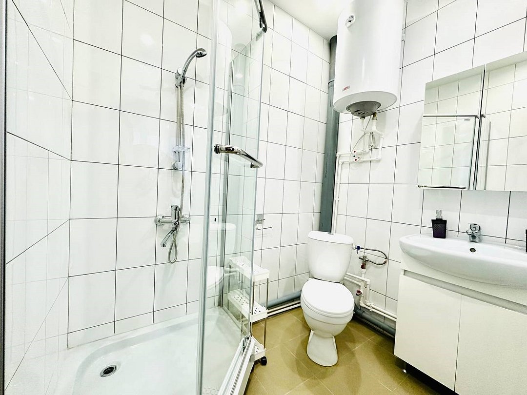 телевизор, кабельное телевидение, Wi-Fi, холодильник, кондиционер, фен, электронные замки, плита для приготовления пищи, микроволновая печь, утюг, ванная комната, душевая кабина, санузел, банные полотенца, гигиенические средства, косметические средства, двуспальная кровать, гладильная доска, стулья, шкаф для одежды, вешалки, обеденный стол, зеркало, кухня, чайный набор, набор посуды, стиральная машина, чайник, унитаз, раковина, косметическое зеркало, обеденная зона, отопление, вид на город, ламинат, кухонная посуда, стаканы, кухонная утварь, столовые приборы, туалетные средства, туалет, сушилка для белья, цифровое тв, телевизор с плоским экраном, кухонный уголок, телевизор со Smart TV, номер для некурящих, онлайн-регистрация до заезда, набор для приготовления чая и кофе, мини-бар (платно), онлайн-регистрация, можно с питомцамиВ студии