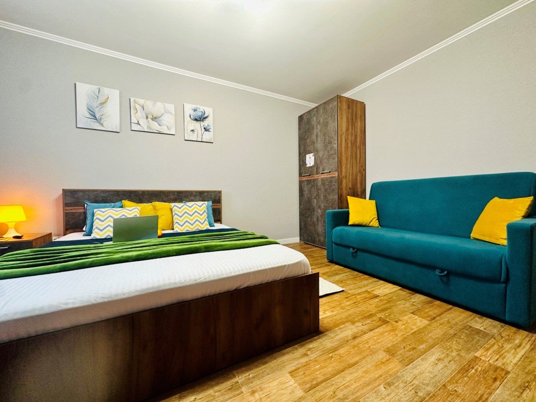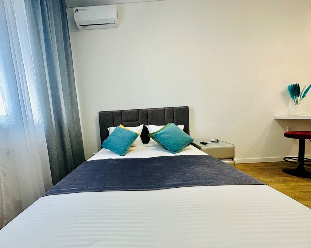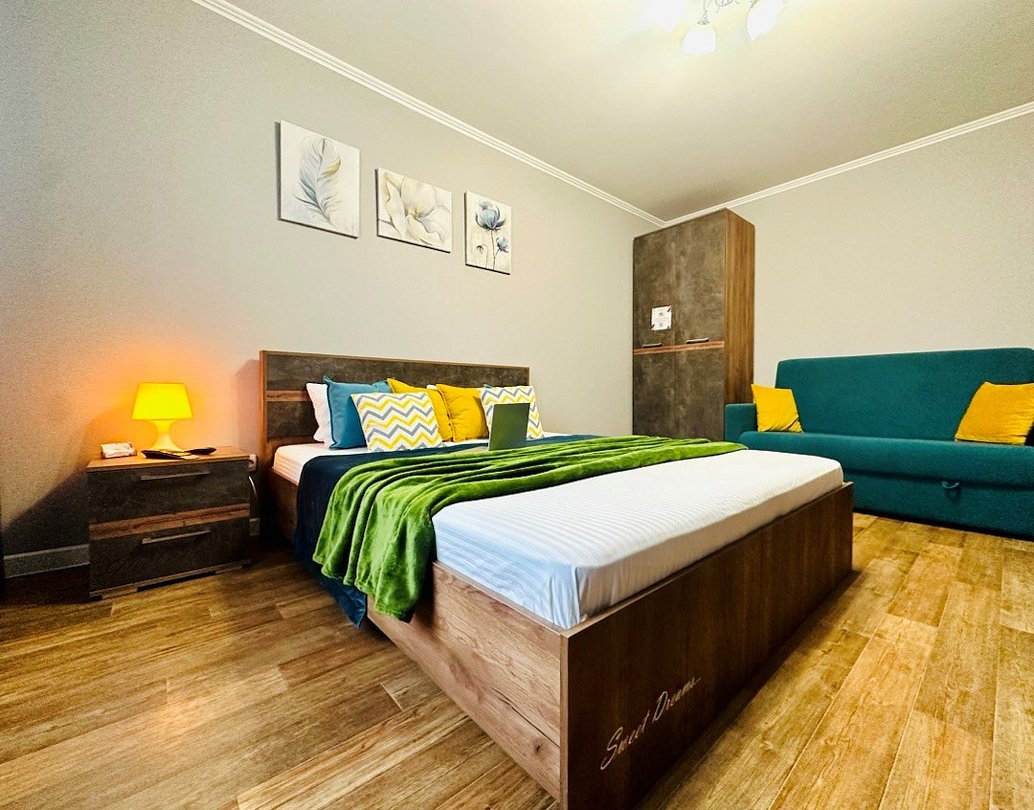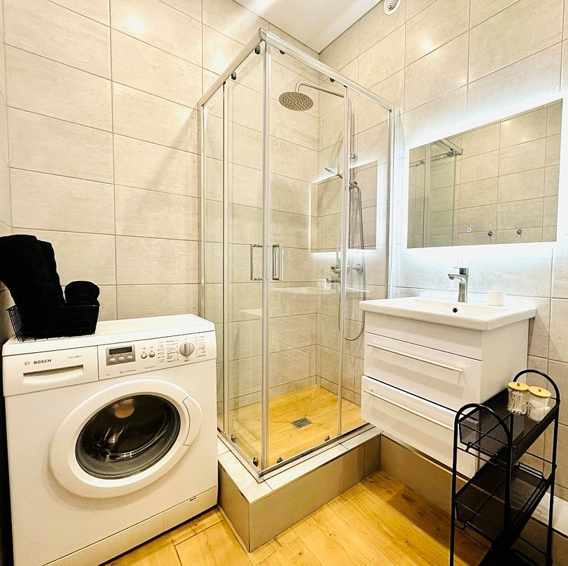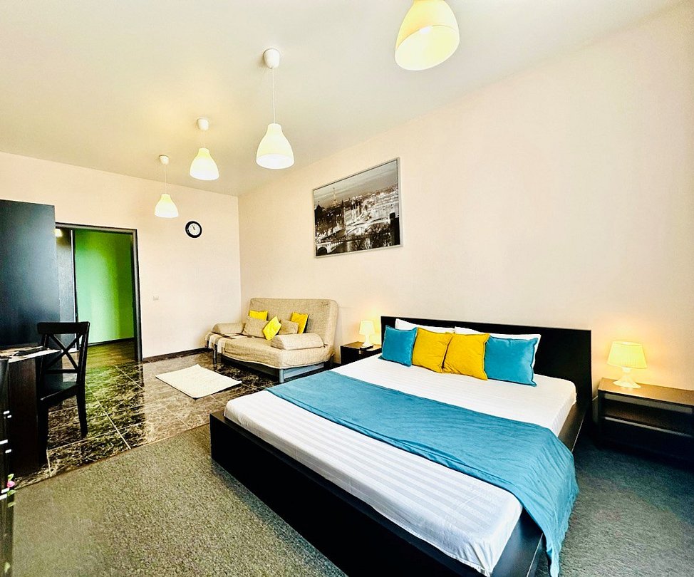 кабельное телевидение, Wi-Fi, фен, электронные замки, плита для приготовления пищи, микроволновая печь, утюг, ванная комната, душевая кабина, санузел, водонагреватель, банные полотенца, косметические средства, двуспальная кровать, тумбы, стулья, шкаф для одежды, вешалки, обеденный стол, чайный набор, набор посуды, стиральная машина, чайник, унитаз, раковина, мягкая мебель, обеденная зона, отопление, вид на город, ламинат, кухонная посуда, стаканы, кухонная утварь, столовые приборы, стол, туалетные средства, цифровое тв, диван-кровать, раскладной диван, телевизор с плоским экраном, мини-холодильник, мини-кухня, кухонный уголок, телевизор со Smart TV, номер для некурящих, онлайн-регистрация до заезда, набор для приготовления чая и кофе, мини-бар (платно), мыло, можно с питомцамиВ номере
