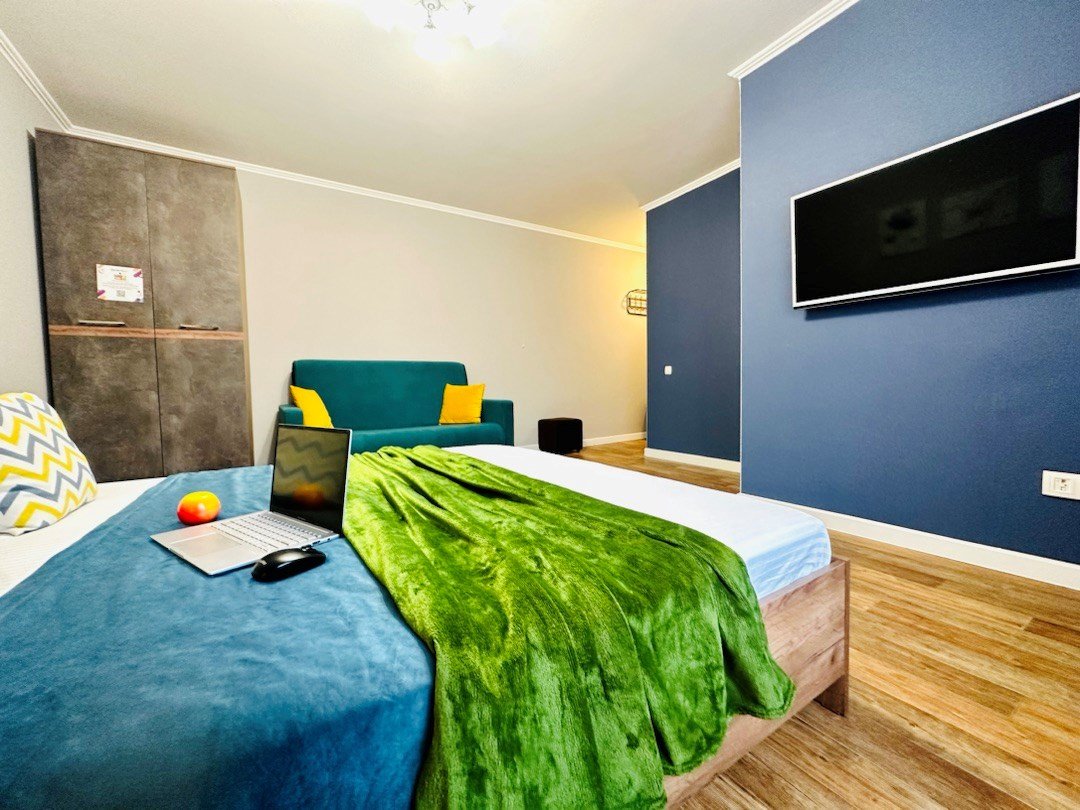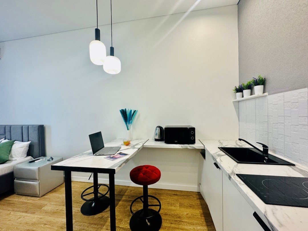 телевизор, кабельное телевидение, Wi-Fi, холодильник, кондиционер, фен, электронные замки, плита для приготовления пищи, микроволновая печь, утюг, ванная комната, душевая кабина, санузел, банные полотенца, гигиенические средства, косметические средства, двуспальная кровать, гладильная доска, стулья, шкаф для одежды, обеденный стол, кухня, чайный набор, набор посуды, стиральная машина, чайник, унитаз, раковина, косметическое зеркало, обеденная зона, отопление, вид на город, ламинат, кухонная посуда, стаканы, кухонная утварь, столовые приборы, туалетные средства, туалет, сушилка для белья, телевизор с плоским экраном, кухонный уголок, телевизор со Smart TV, номер для некурящих, онлайн-регистрация до заезда, набор для приготовления чая и кофе, мини-бар (платно), мыло, онлайн-регистрация, можно с питомцамиВ студии