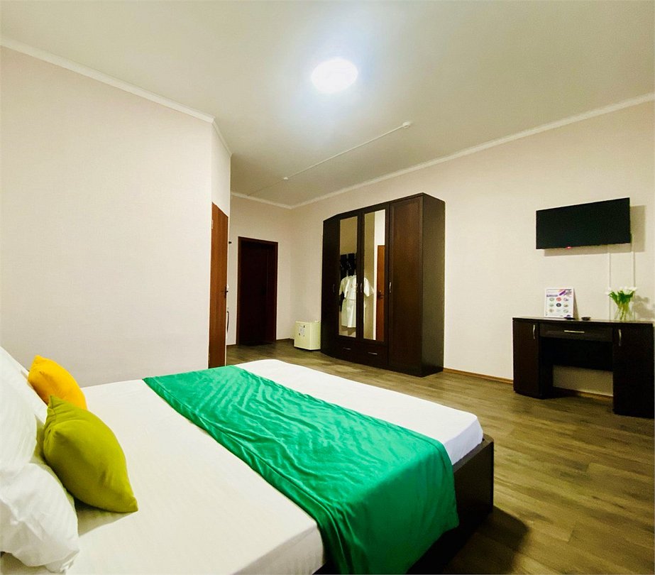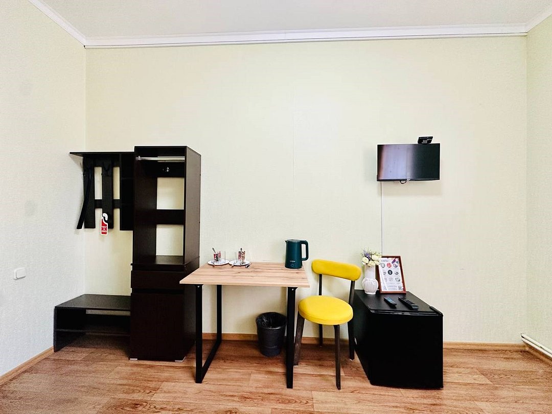 кабельное телевидение, Wi-Fi, холодильник, фен, электронные замки, плита для приготовления пищи, микроволновая печь, утюг, косметические средства, двуспальная кровать, стулья, шкаф для одежды, обеденный стол, кухня, чайный набор, набор посуды, чайник, обеденная зона, отопление, вид на город, общая ванная комната, ламинат, кухонная посуда, стаканы, кухонная утварь, столовые приборы, внешняя ванная комната, стол, туалетные средства, санузел на этаже, цифровое тв, мини-кухня, кухонный уголок, душ на этаже, телевизор со Smart TV, номер для некурящих, онлайн-регистрация до заезда, набор для приготовления чая и кофе, мини-бар (платно), мыло, можно с питомцамиВ номере