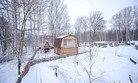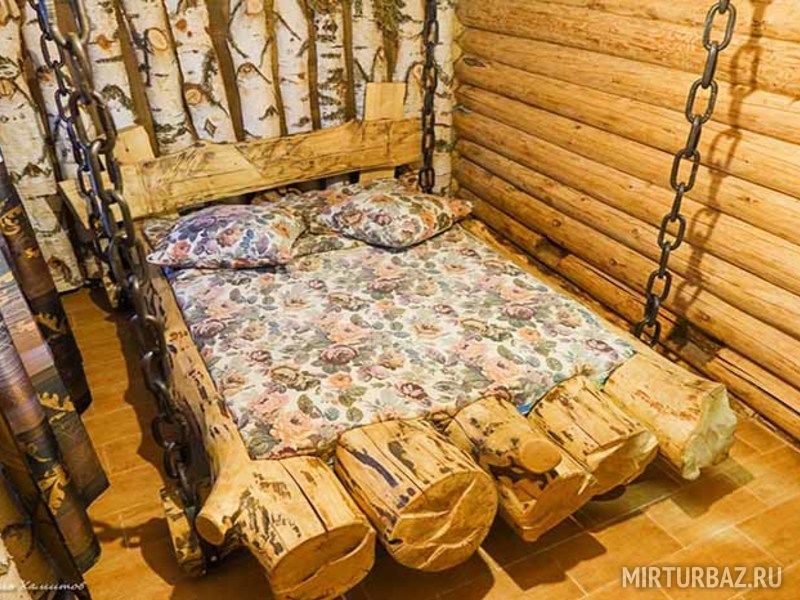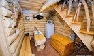 Деревянный дом №4 на 4 места двухэтажный с баней. Теплые полы, баня, санузел с душевой, горячее и холодное водоснабжение, посуда, микроволновка, холодильник, обеденный стол, в спальне на втором этаже двуспальная кровать с постельным бельем, диван и кондиционер.