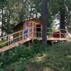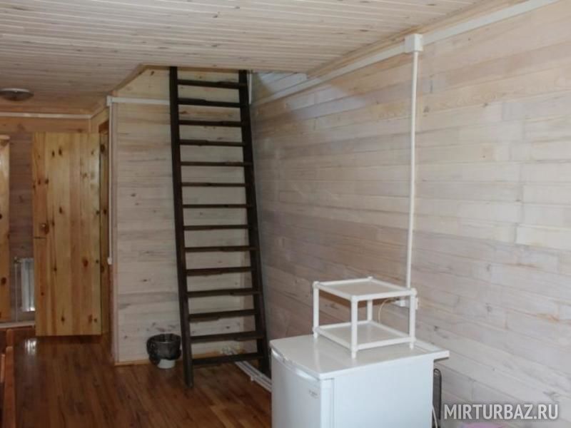 Холодильник, две односпальные кровати, двуспальный матрас на втором этаже, электрический чайник, унитаз, раковина, зеркало, обеденный стол и стулья