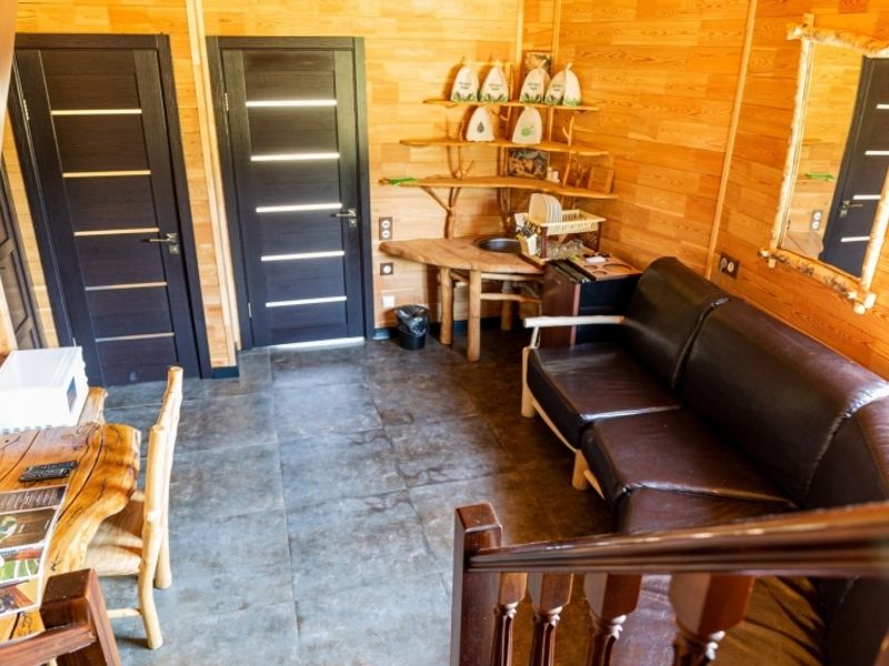 Двухуровневый дом с отдельной входной группой, гостиной зоной, двумя комфортабельными комнатами и спальной зоной на верхнем уровне. В номерах предоставлены: полотенца, халаты, тапочки, средства личной гигиены. Гостиная зона оборудована столовой посудой, чайным набором, ключевой водой. Создаем все условия для вашего незабываемого отдыха!