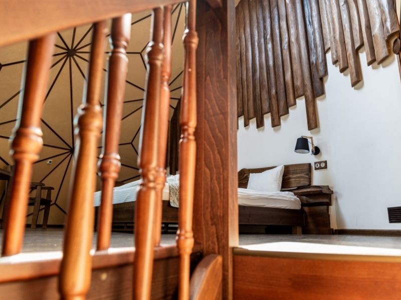 Двухэтажный номер в отеле с комфортабельными спальными зонами и Lounge-зоной. В номерах предоставлены: полотенца, халаты, тапочки, средства личной гигиены. Lounge-зона оборудована чайным набором, ключевой водой.