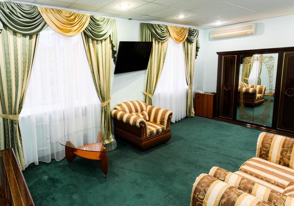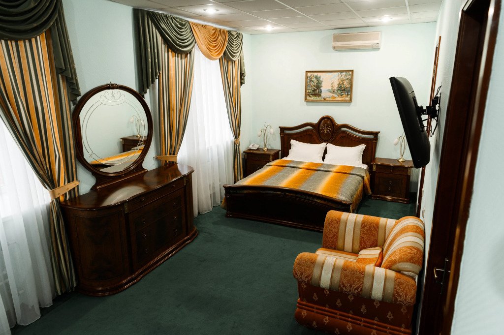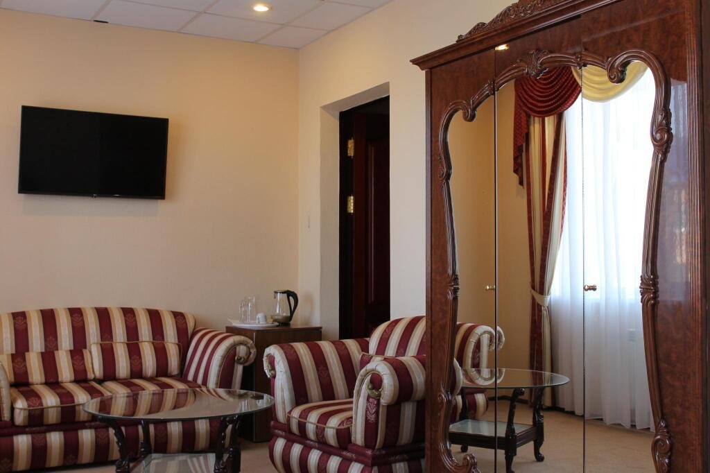 В номере вы найдёте телевизор и халат. Оснащение зависит от выбранной категории номера.